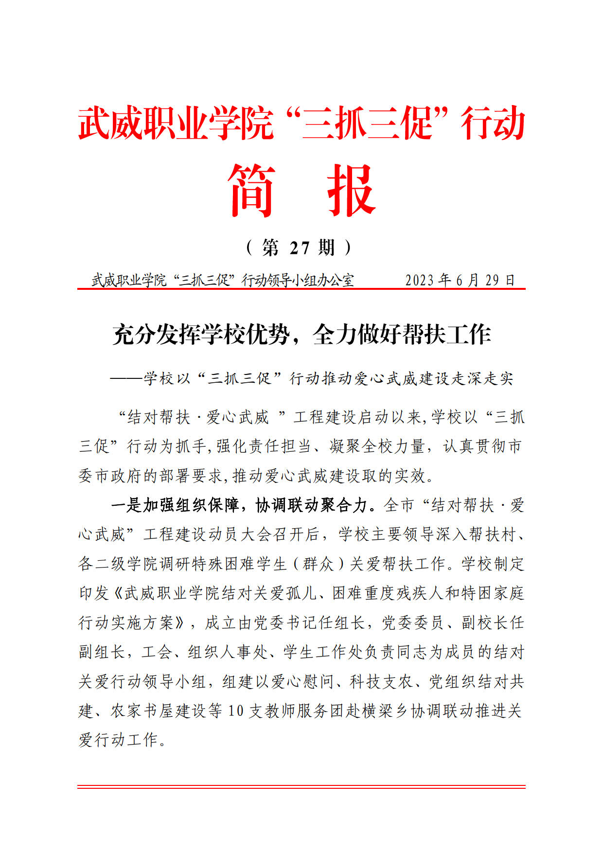 簡報第27期:充分發(fā)揮學(xué)校優(yōu)勢,全力做好幫扶工作——學(xué)校以“三抓三促”行動推動愛心武威建設(shè)走深走實