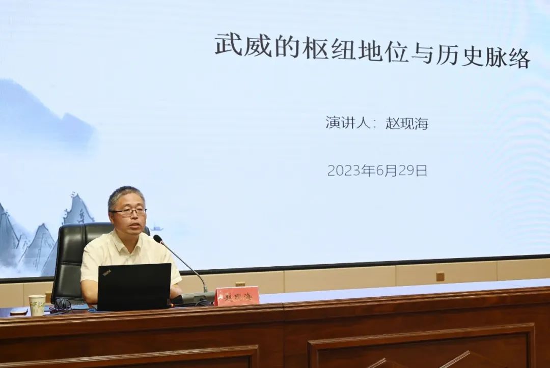 6月29日,2023年第二期《涼州講壇》在武威市開講,中國社會(huì)科學(xué)院古代史研究所古代通史研究室主任、研究員趙現(xiàn)海應(yīng)邀在武威職業(yè)學(xué)院作《武威的樞紐地位與歷史脈絡(luò)》的專題講座。市委宣傳部常務(wù)副部長林艷軍主持。