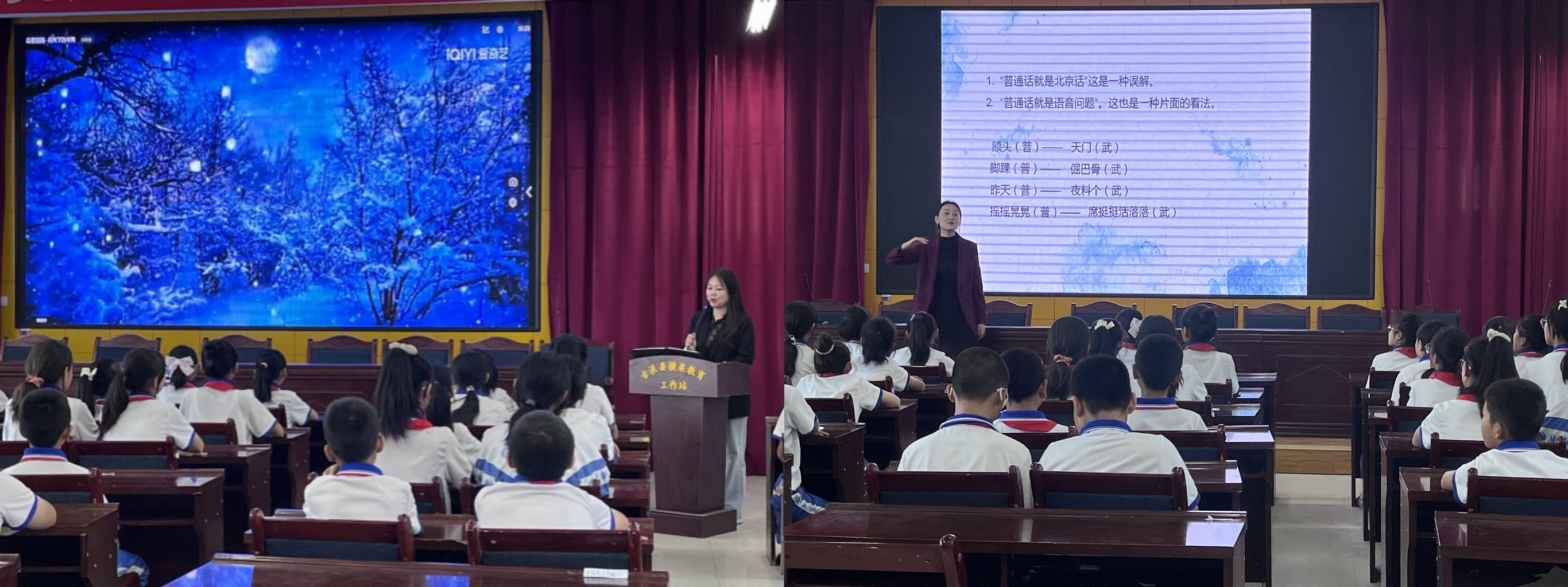 國家級普通話水平測試員開展了《學(xué)好普通話 方便你我他》培訓(xùn),向小學(xué)生講解了普通話的重要性、武威方言中常出現(xiàn)的語音錯誤等內(nèi)容,激發(fā)了小學(xué)生學(xué)習(xí)普通話的熱情,增強(qiáng)了學(xué)生對祖國語言文字的熱愛之情,營造了積極向上、健康文明的校園文化氛圍。