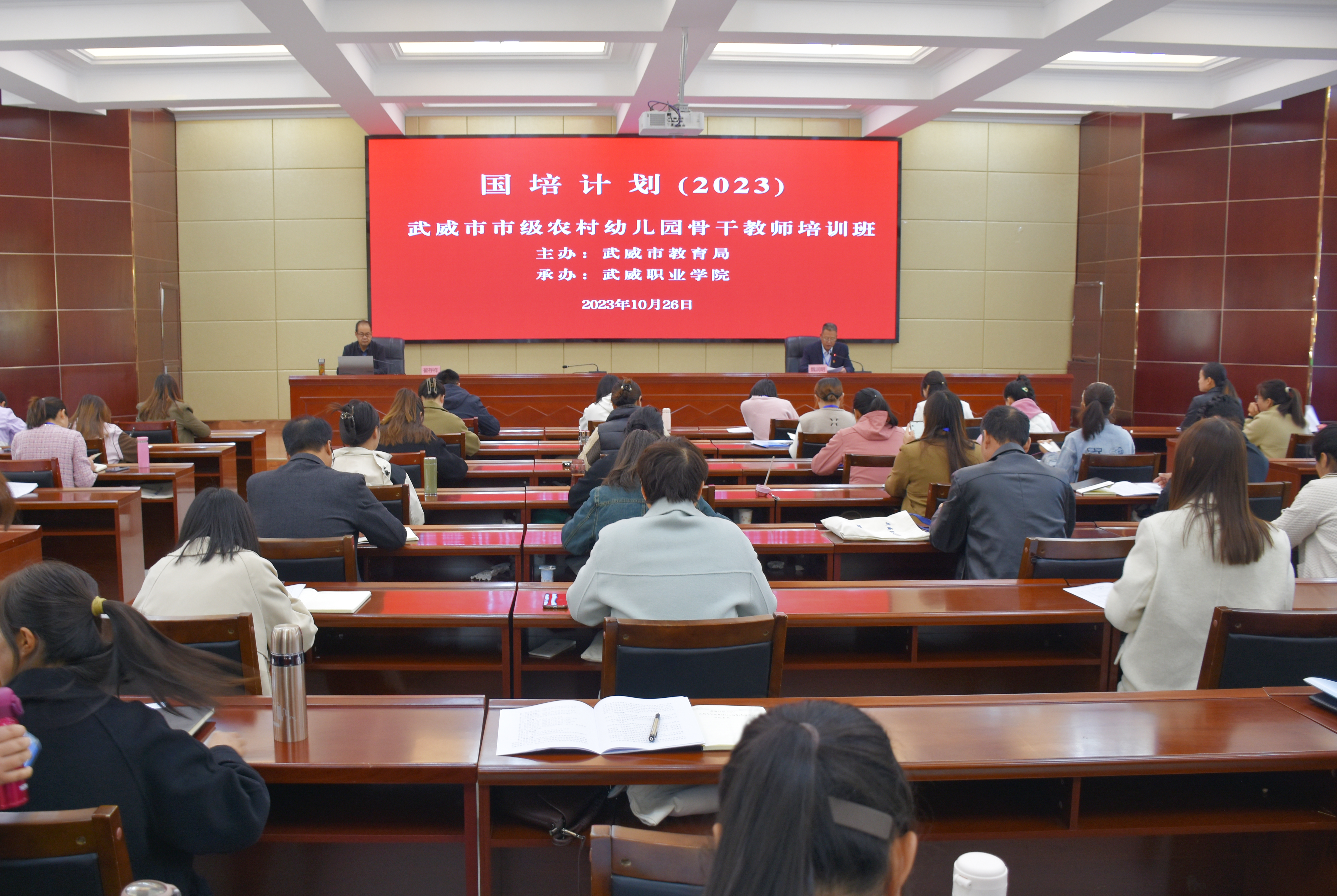 2023年10月26日上午,由武威市教育局主辦、武威職業(yè)學(xué)院承辦的“國(guó)培計(jì)劃(2023)”武威市市級(jí)農(nóng)村幼兒園骨干教師能力提升培訓(xùn)在學(xué)院行樹樓北側(cè)報(bào)告廳舉行開班儀式。武威職業(yè)學(xué)院黨委委員、副校長(zhǎng)何毅出席開班儀式。部分授課專家、培訓(xùn)組織管理工作人員及65名參訓(xùn)幼兒園骨干教師參加開班儀式。開班儀式由武威職業(yè)學(xué)院繼續(xù)教育學(xué)院院長(zhǎng)魏潤(rùn)明主持。