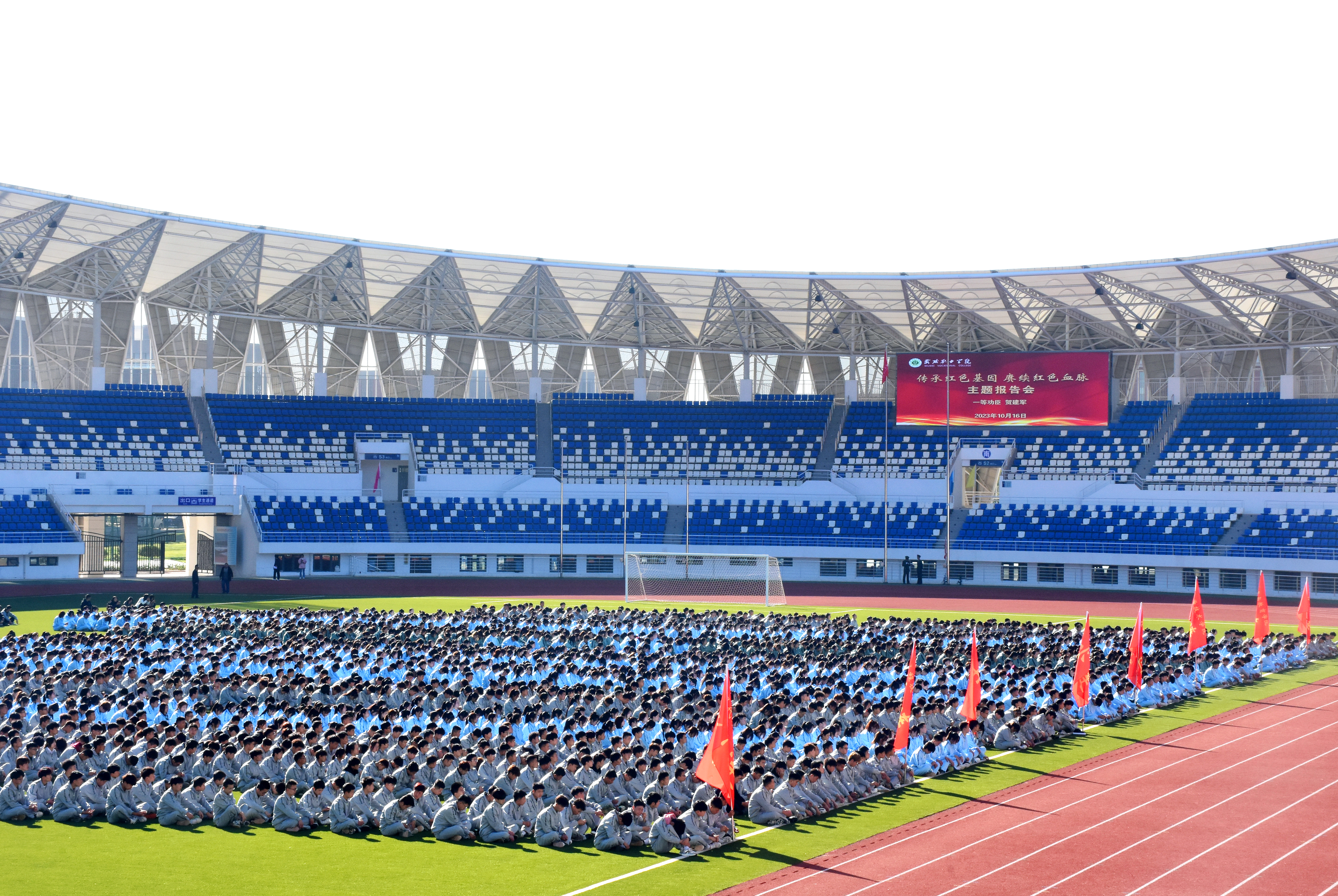 為進(jìn)一步鞏固我校國防教育成果,充分激發(fā)2023級新生參加軍訓(xùn)的熱情和投身國防建設(shè)的使命感和責(zé)任感,10月16日上午,學(xué)校邀請參戰(zhàn)老兵、“一等戰(zhàn)功”英雄模范、“全國模范退役軍人”賀建軍同志開展了主題為“傳承紅色基因,賡續(xù)紅色血脈”的國防教育宣講會(huì),通過講述光榮戰(zhàn)斗事跡,傳承革命意志,為同學(xué)們帶來了一堂生動(dòng)的國防教育課。