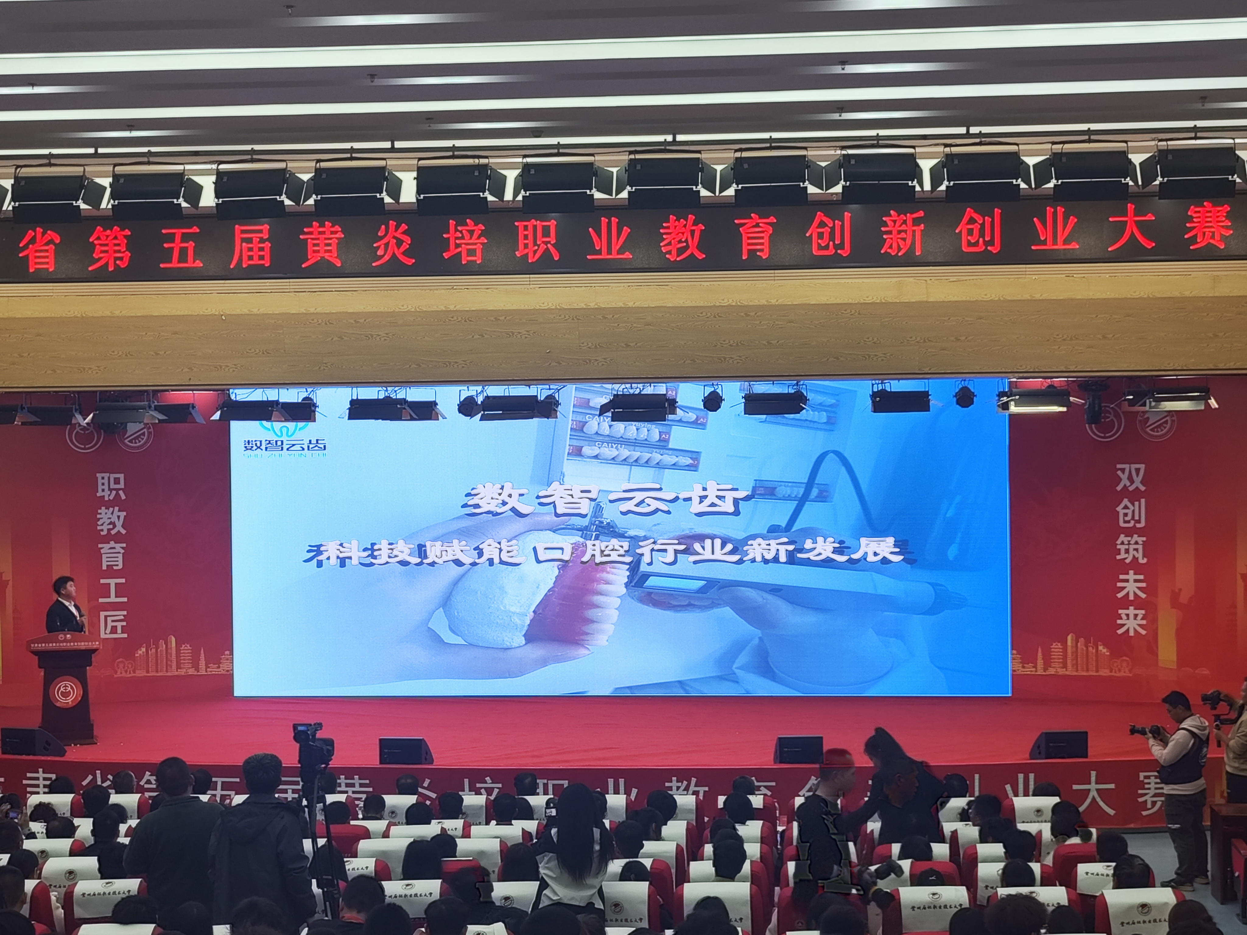 本屆大賽以“職教育工匠,雙創(chuàng)筑未來”為主題,設(shè)主題賽和專項(xiàng)賽,省內(nèi)47所院校近300名選手參加決賽,經(jīng)過激烈角逐,我校獲一等獎(jiǎng)1項(xiàng),三等獎(jiǎng)4項(xiàng),學(xué)校榮獲優(yōu)秀組織獎(jiǎng)?!稊?shù)智云齒--科技賦能口腔行業(yè)新發(fā)展》項(xiàng)目在頒獎(jiǎng)晚會(huì)代表優(yōu)秀項(xiàng)目進(jìn)行路演。