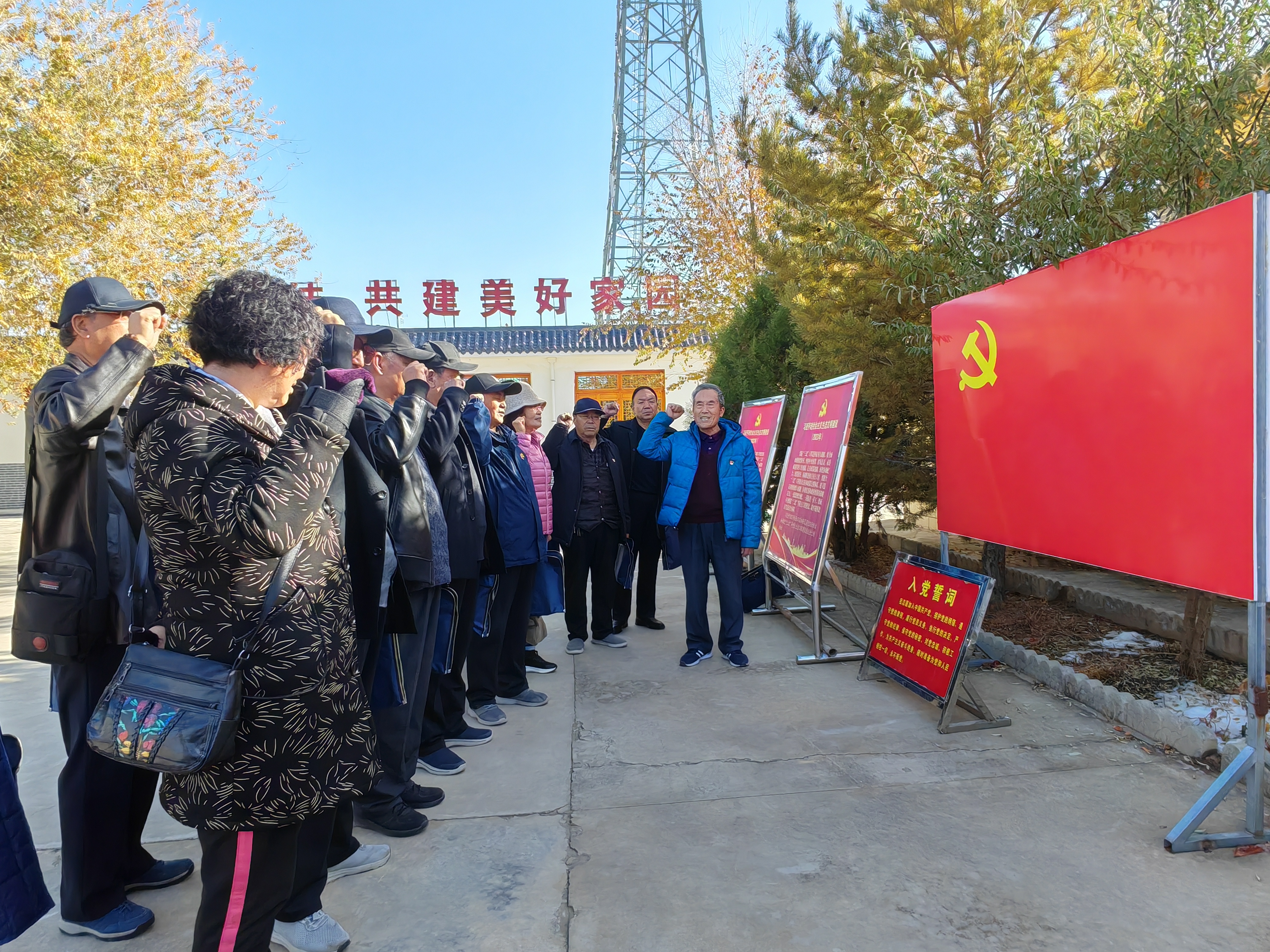 在鮮紅的黨旗下,離退休黨員們佩戴黨員徽章,舉起右手,握緊拳頭,重溫入黨誓詞。他們以飽滿精神、鏗鏘聲音,表達(dá)對黨和人民的忠誠,以及為共產(chǎn)主義事業(yè)奮斗終身的決心。