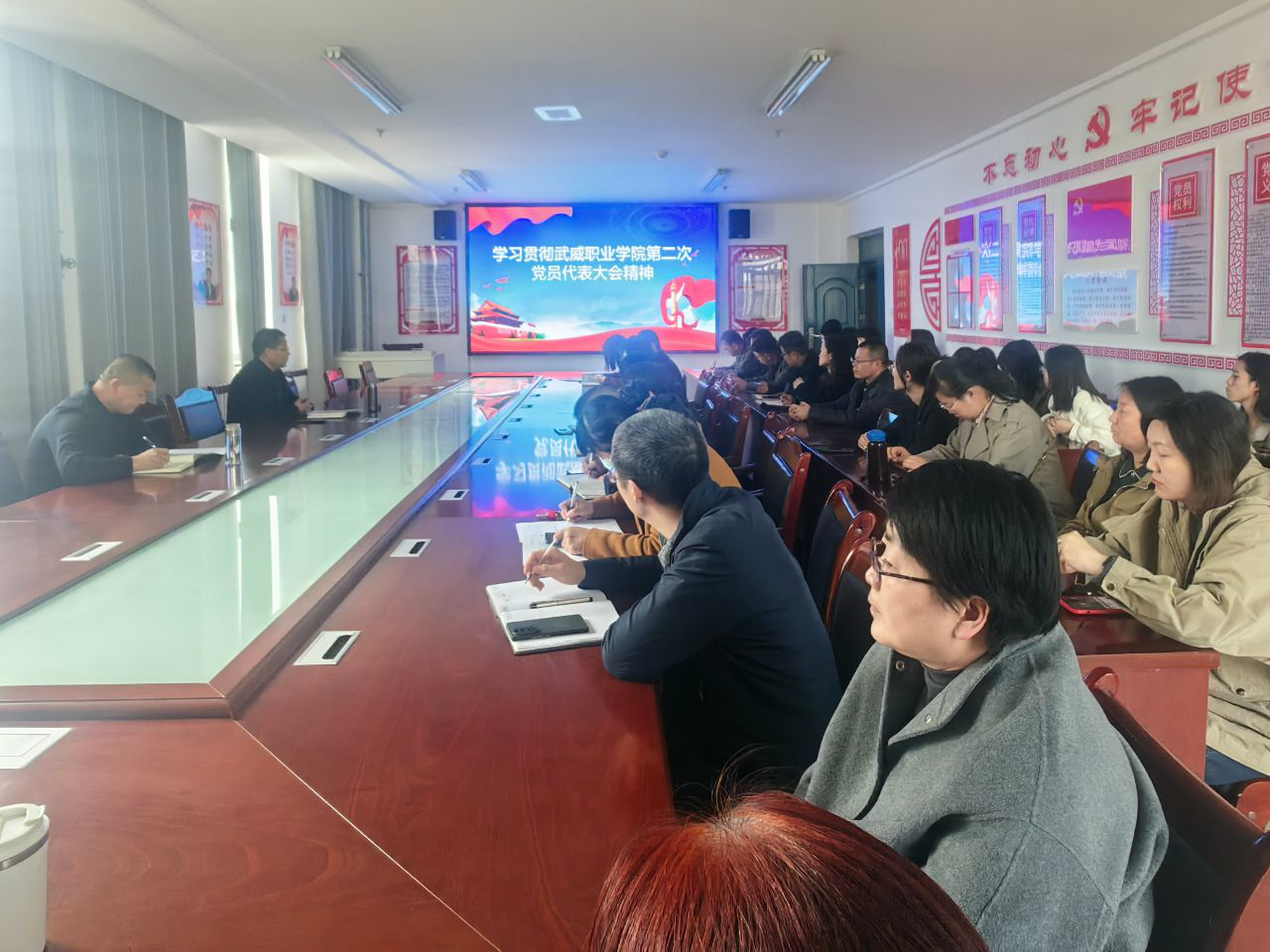 會議強調(diào),全院教職工要深刻領(lǐng)悟?qū)W校第二次黨代會報告的精神內(nèi)涵,把思想行動統(tǒng)一到學(xué)校黨代會確定的目標(biāo)、任務(wù)、舉措上來,圍繞“一個中心”,遵循“一個目標(biāo)”,按照“三個重點”,實施“六個工程”的發(fā)展目標(biāo)踔厲奮發(fā),勇毅前行。在人才培養(yǎng)、專業(yè)建設(shè)、服務(wù)社會等方面,用新舉措開創(chuàng)新局面,為建設(shè)省域內(nèi)一流職業(yè)院校努力奮斗。