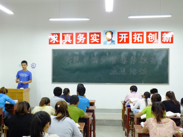 2013年5月20日,藥學系組織全體班團干部在4號教學樓410教室開展了“實現(xiàn)中國夢,青春勇?lián)?rdquo;的主題班團干部會活動,同學們認真聆聽了習近平在同各界優(yōu)秀青年代表座談時的講話,習近平強調(diào),青年最富有朝氣,最富有夢想,青年興則國興,青年強則國強。