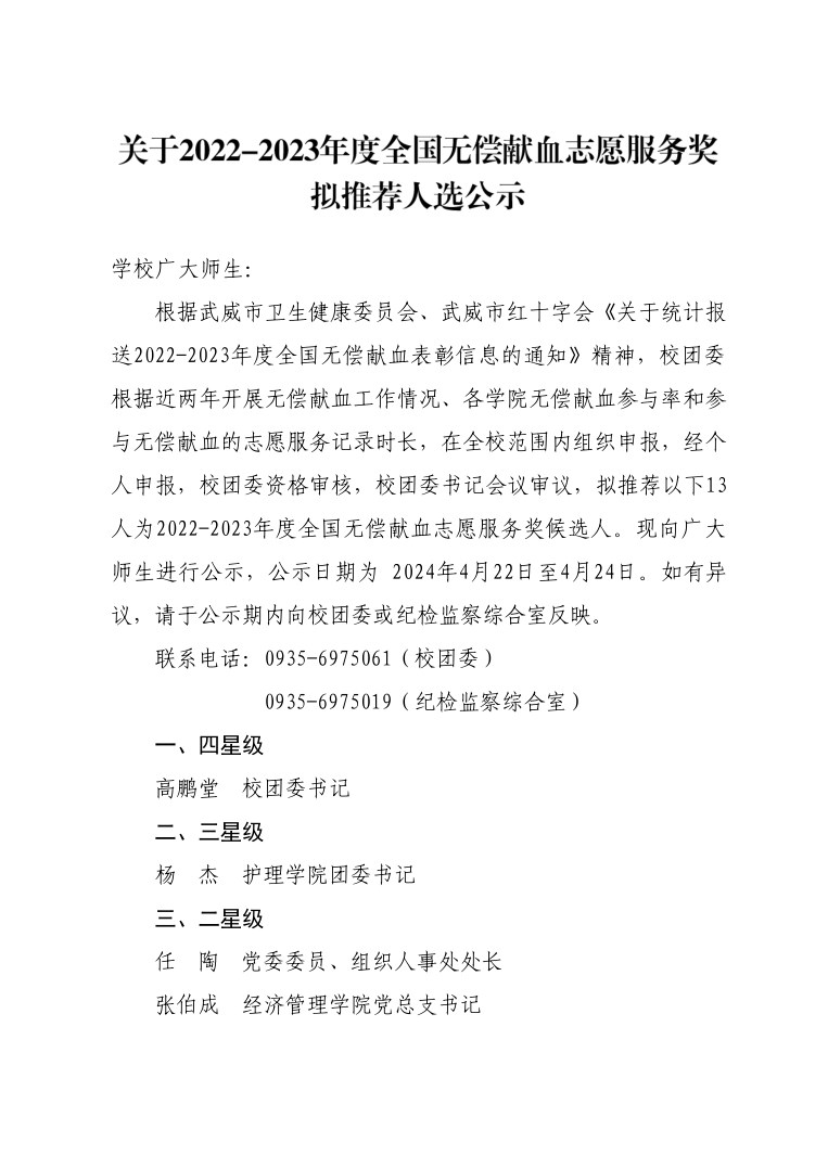 關(guān)于2022-2023年度全國無償獻血志愿服務(wù)獎擬推薦人選公示