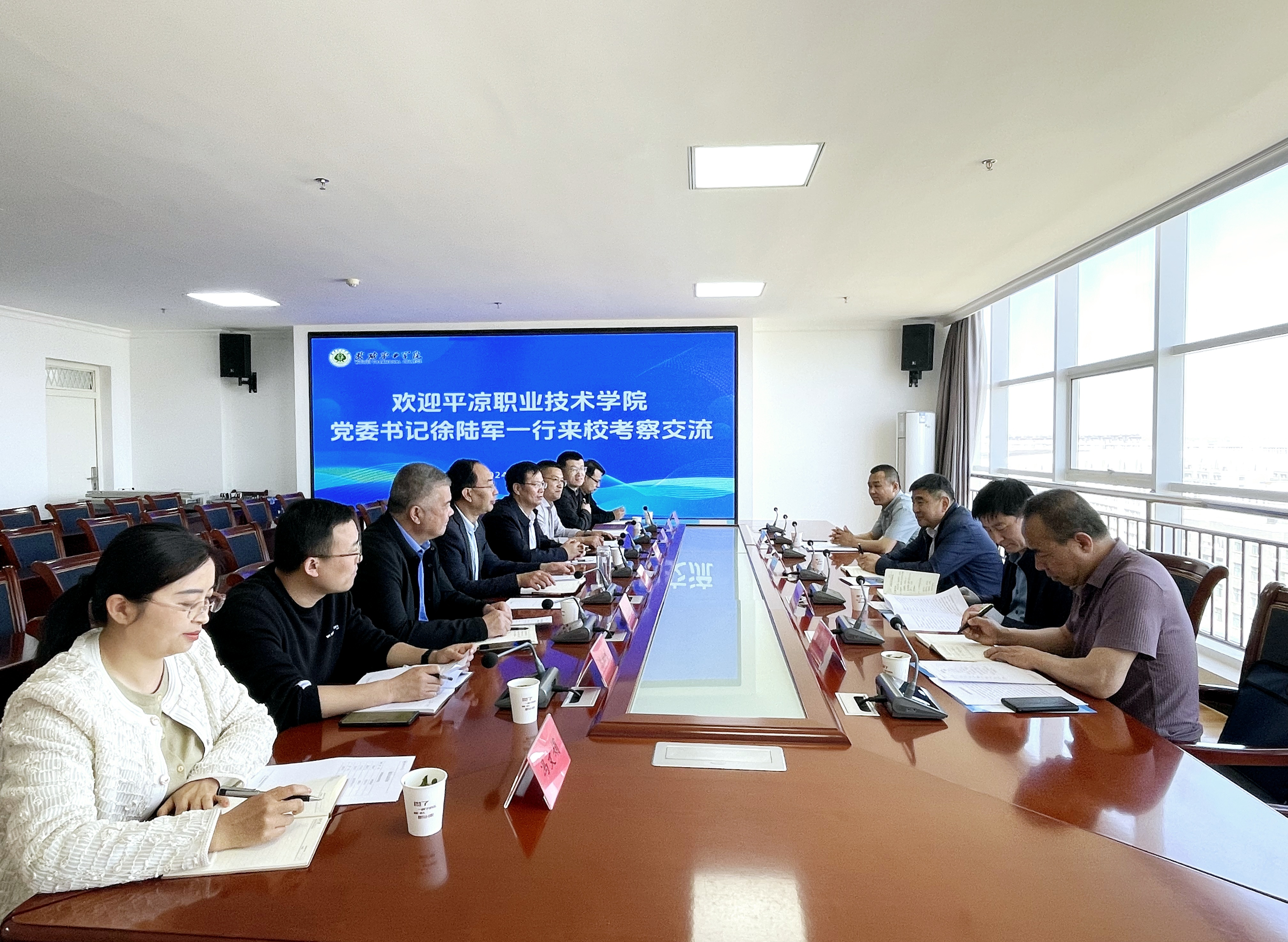 4月25日,平?jīng)雎殬I(yè)技術(shù)學院黨委書記徐陸軍、副院長魏顯文一行6人來我??疾旖涣鳌W校黨委書記王宏主持座談交流會。學校校長、黨委副書記張開禮,副校長王守云以及辦公室、招生就業(yè)處、質(zhì)量管理處、雙創(chuàng)中心、中科低碳新能源技術(shù)學院、工程技術(shù)學院等相關(guān)部門負責同志參加會議。