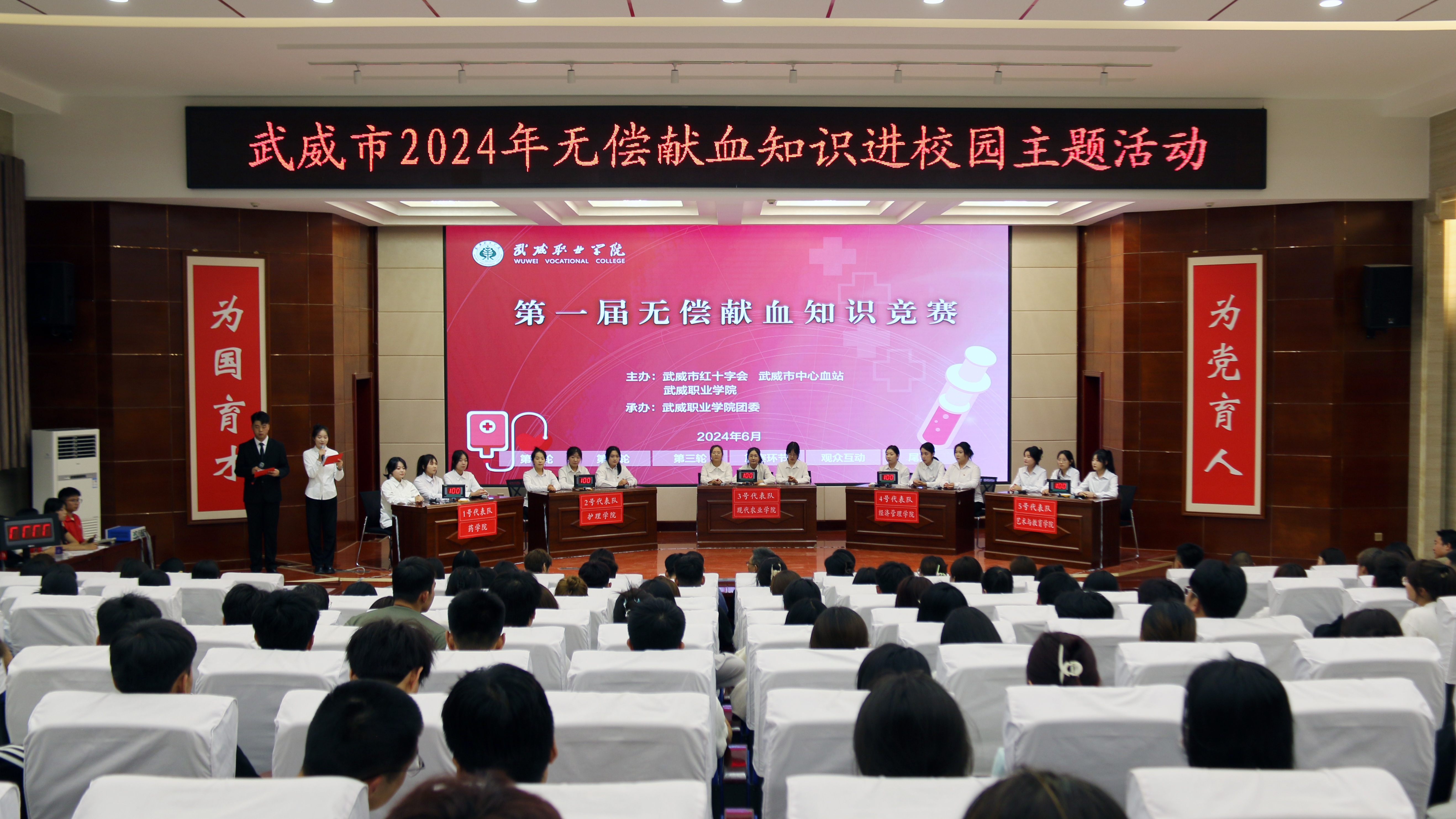 血液是生命的源泉,愛心是生命的曙光。6月17日,由武威職業(yè)學(xué)院、武威市紅十字會(huì)、武威市中心血站共同主辦的無償獻(xiàn)血知識(shí)競(jìng)賽在菁英廳舉辦。