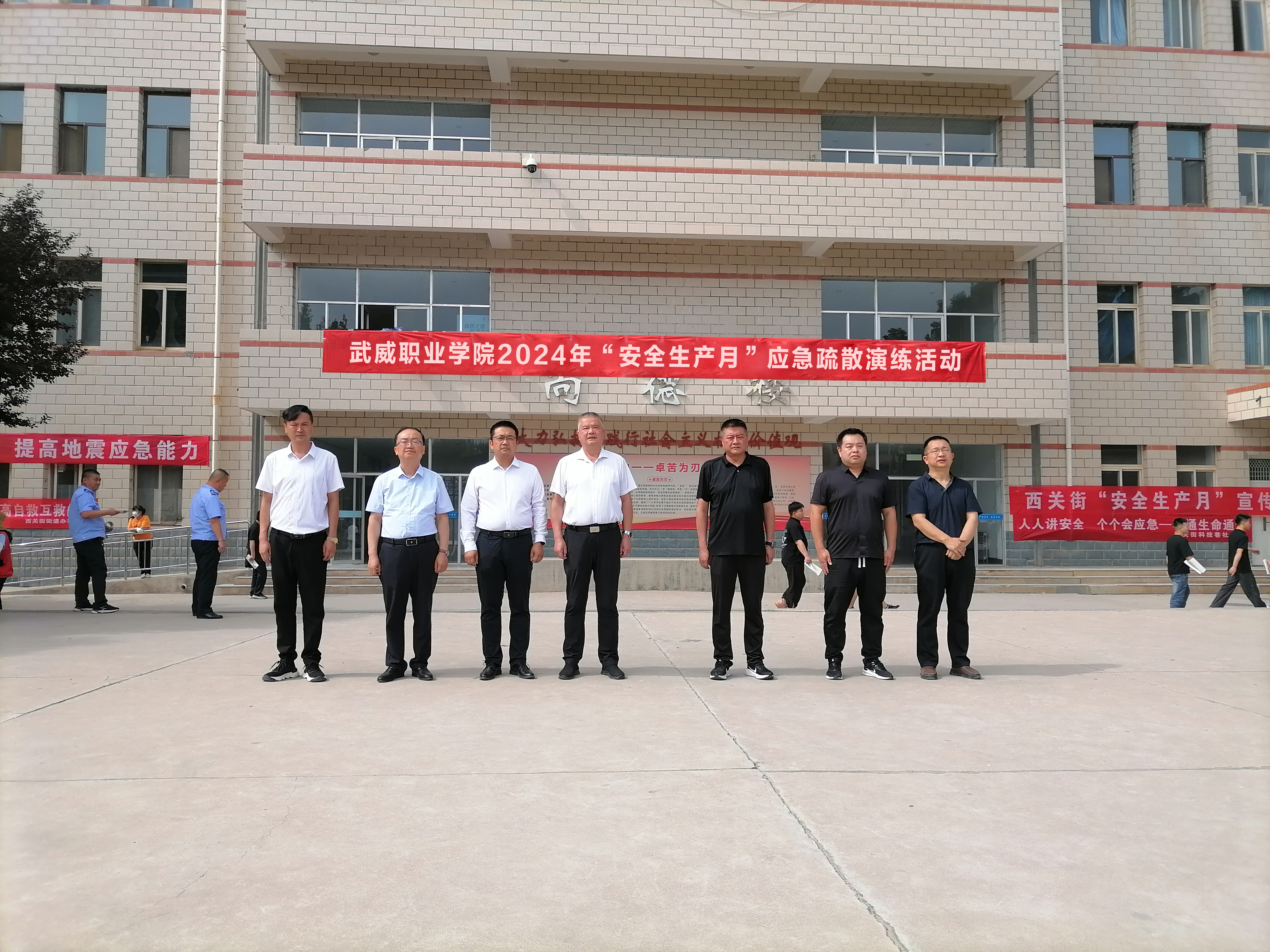 為深入學(xué)習宣傳和貫徹落實黨的二十大精神和習近平總書記關(guān)于安全生產(chǎn)的重要論述,切實做好應(yīng)急防范工作,提升廣大師生安全意識和避險逃生能力,使其熟知安全逃生路線,掌握正確逃生和自救互救要領(lǐng),從容應(yīng)對突發(fā)事件,最大限度地保護人身安全,6月25日下午,學(xué)校舉行2024年“安全生產(chǎn)月”應(yīng)急疏散演練活動,本次活動主題為“人人講安全、個個會應(yīng)急--暢通生命通道”。學(xué)校黨委委員、副校長王守云,社區(qū)工作人員,轄區(qū)派出所干警,學(xué)校安全保衛(wèi)處、學(xué)生工作部、后勤管理處及各二級學(xué)院負責同志現(xiàn)場指揮觀摩演練,全校8000多名在校師生參加演練。