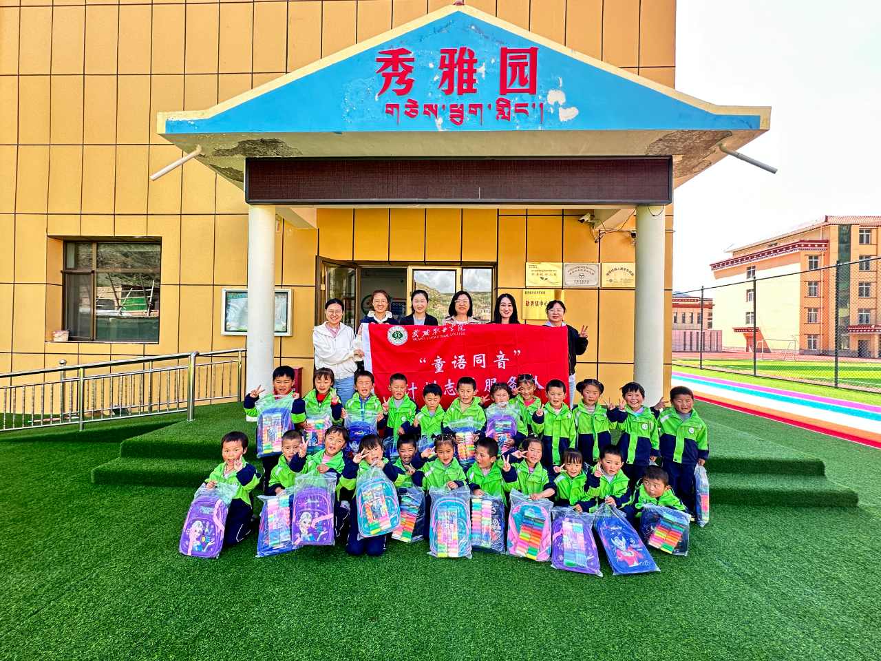 培訓(xùn)程結(jié)束后,“童語同音”志愿服務(wù)團(tuán)隊(duì)與幼兒開展語言文字類的系列活動(dòng),激發(fā)了小朋友學(xué)習(xí)普通話的興趣和熱情;最后為幼兒園小班小朋友捐贈(zèng)了書包、彩泥、彩筆等文具。