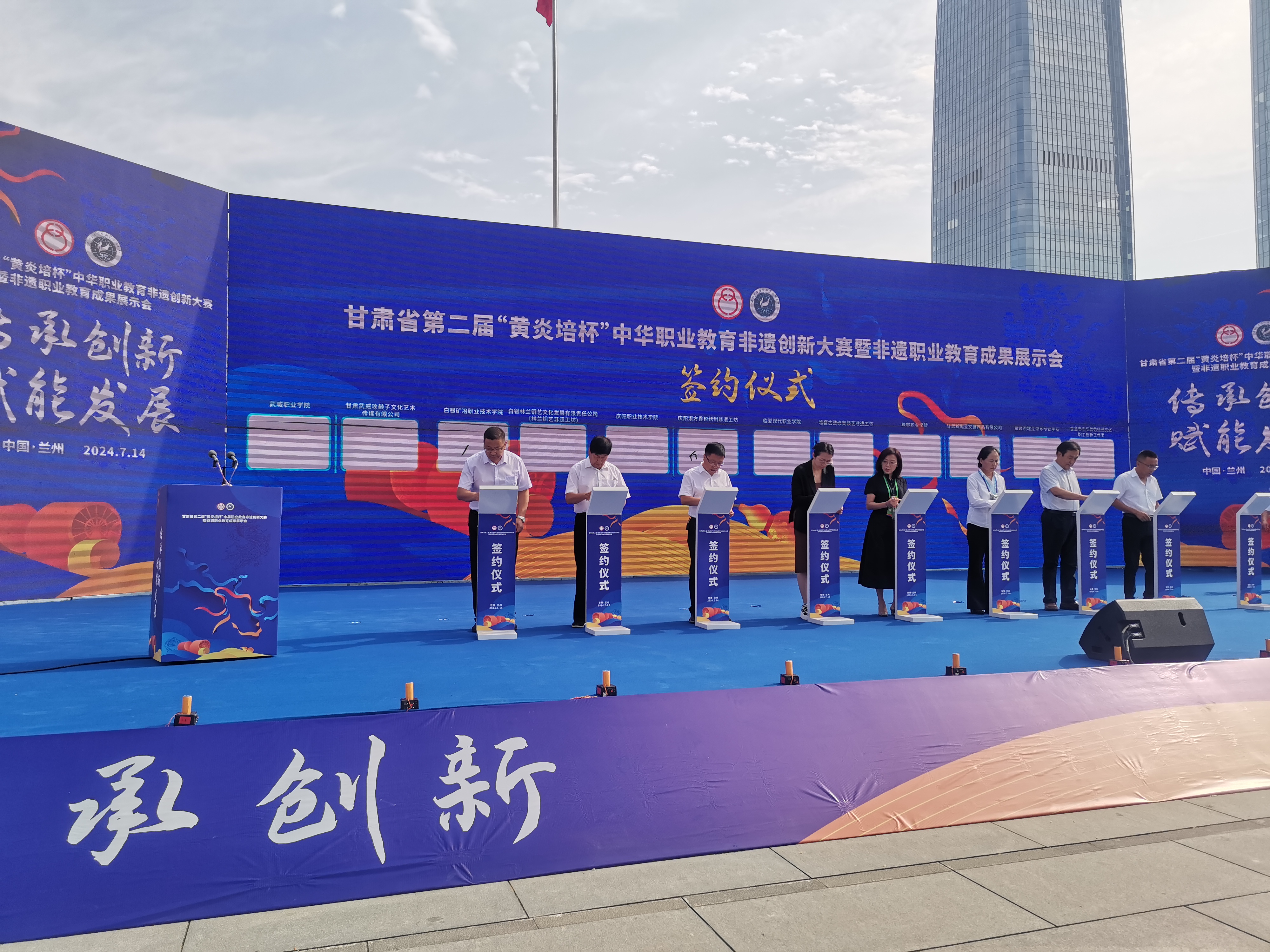 賽會(huì)期間還舉行了非遺進(jìn)職校簽約儀式,學(xué)校黨委委員、紀(jì)委書(shū)記、監(jiān)察專(zhuān)員陳曉煜代表學(xué)校與甘肅武威攻鼓子文化藝術(shù)傳媒有限公司簽訂了合作協(xié)議。
