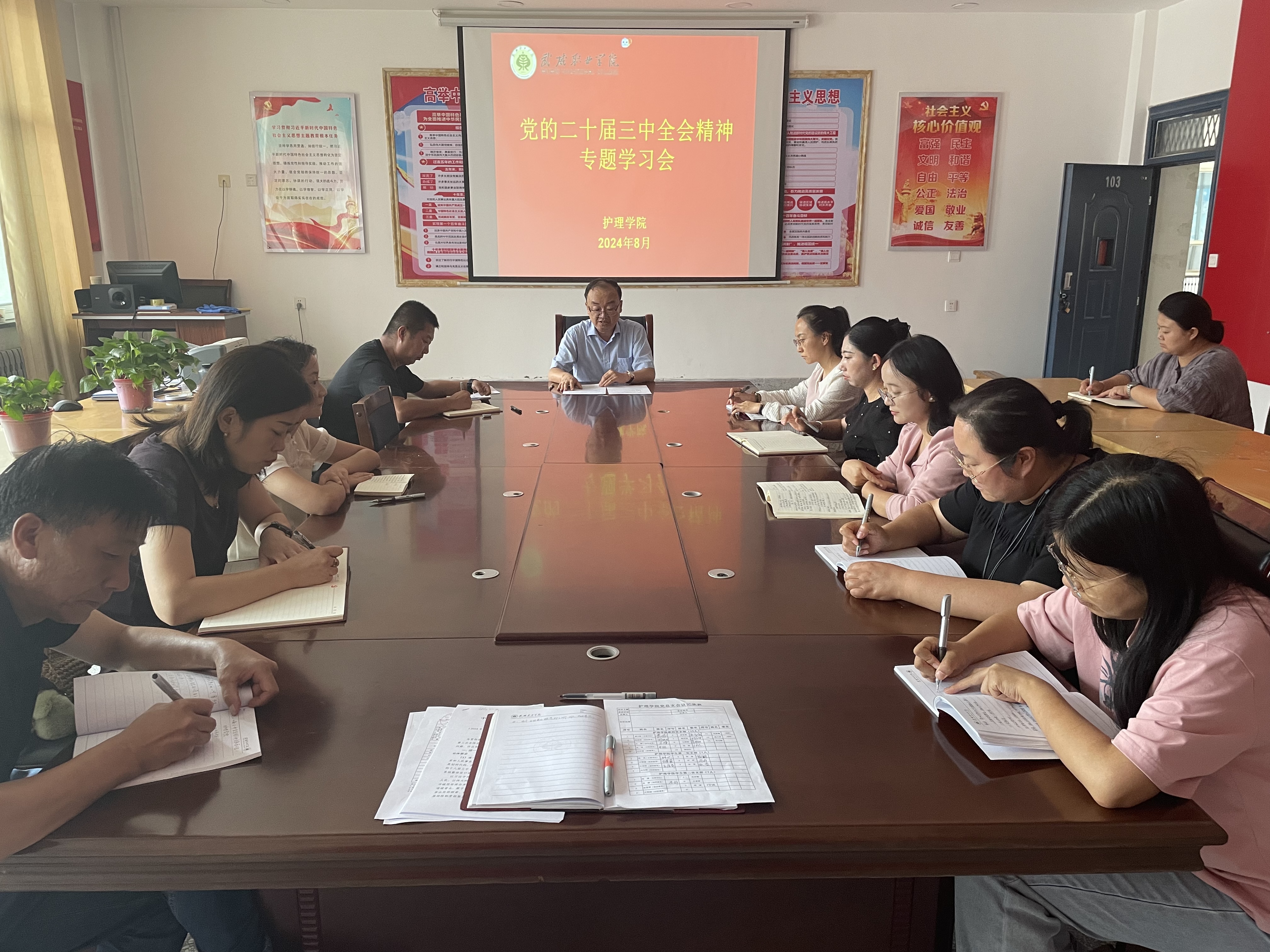 8月6日,護(hù)理學(xué)院召開傳達(dá)學(xué)習(xí)黨的二十屆三中全會(huì)精神專題學(xué)習(xí)會(huì)議,學(xué)院黨總支書記、院長(zhǎng)黃文源主持會(huì)議。
