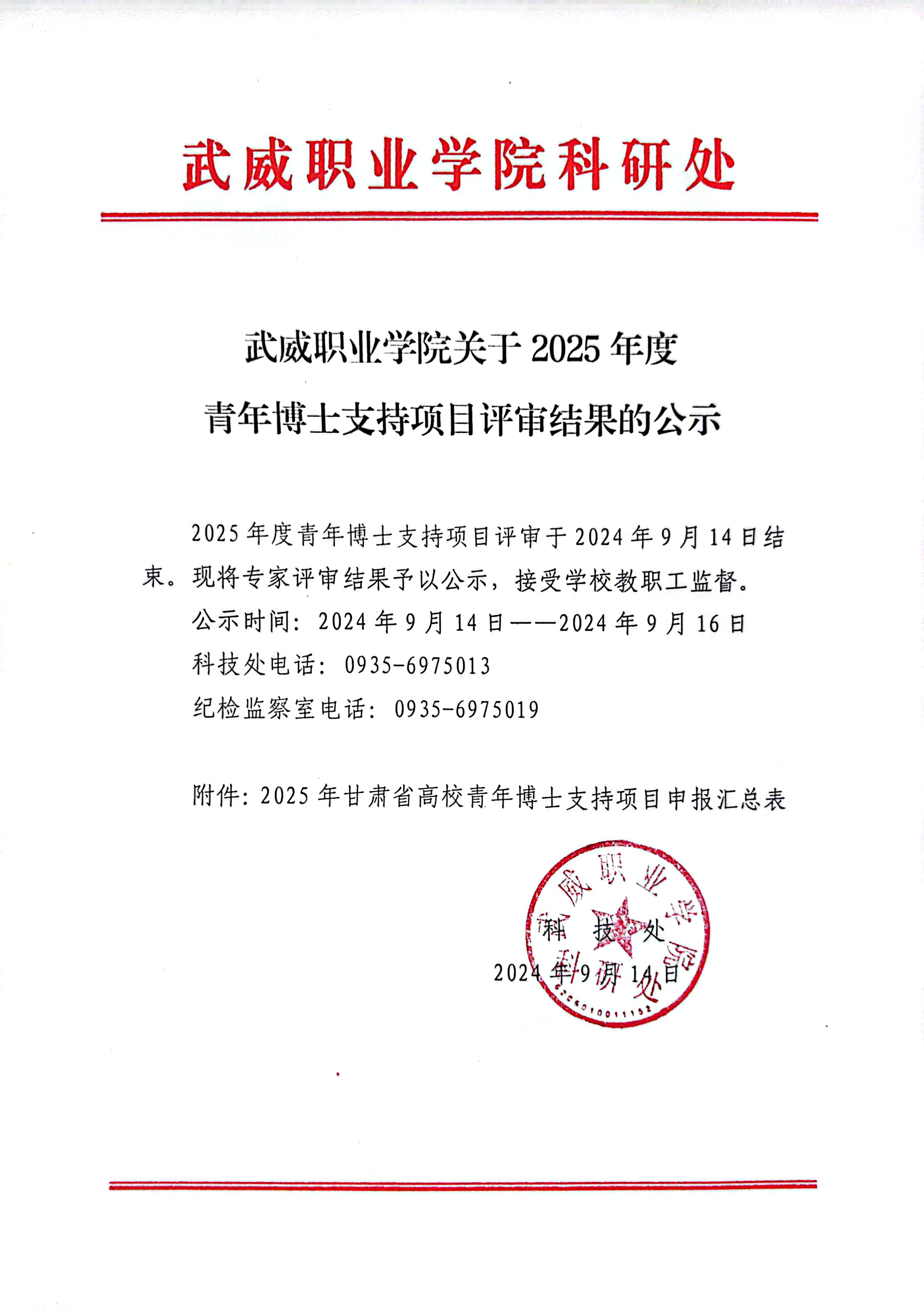 武威職業(yè)學(xué)院關(guān)于2025年度青年博士支持項目評審結(jié)果的公示