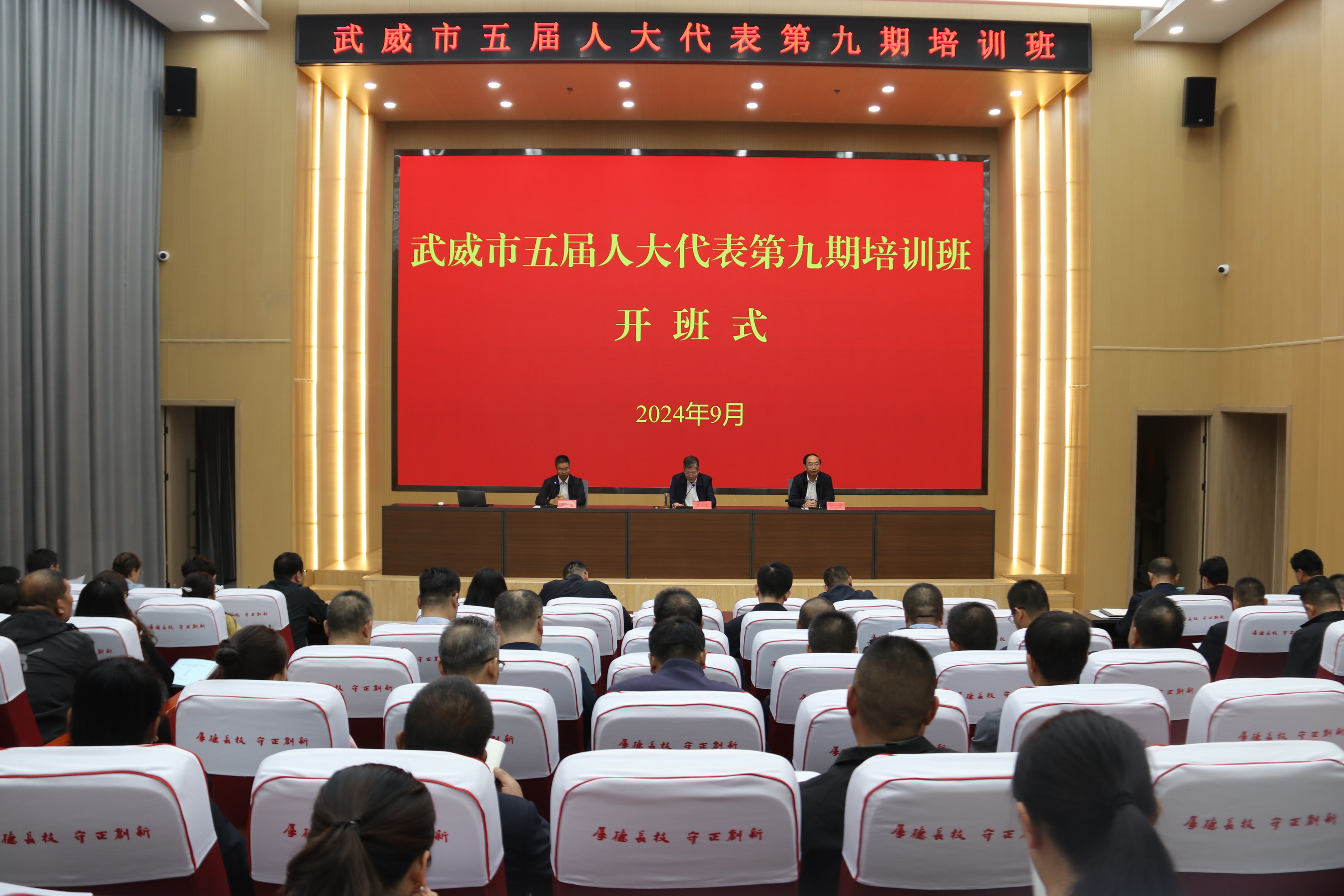 9月26日上午,我校承辦的武威市第五屆人大代表第九期履職培訓班在學校能源樓一樓報告廳開班。
