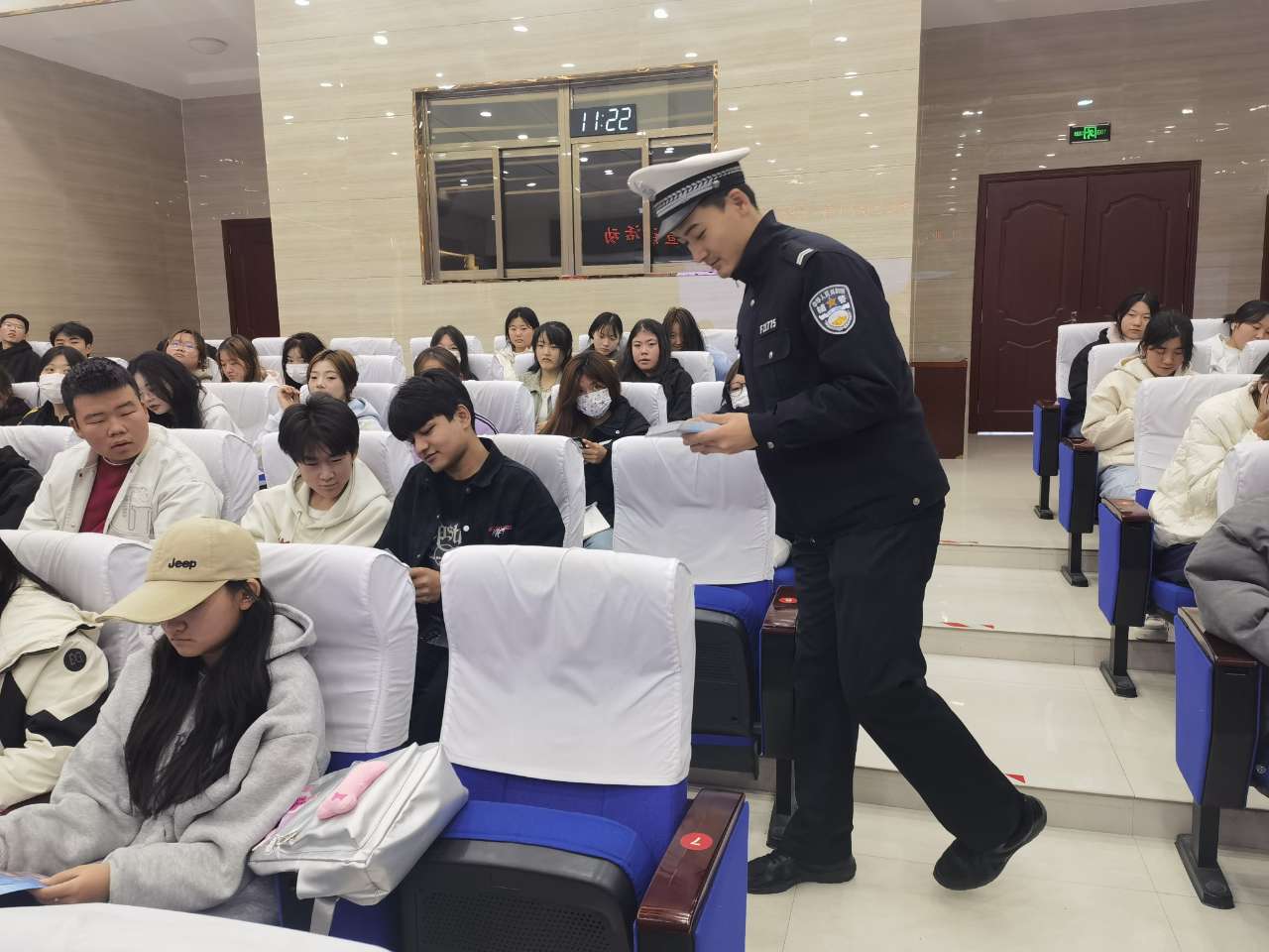 為進(jìn)一步推進(jìn)平安校園建設(shè),增強(qiáng)師生的交通安全意識(shí),預(yù)防和減少交通事故的發(fā)生。10月24日,學(xué)校邀請(qǐng)武威市公安局交警支隊(duì)王穎警官來(lái)學(xué)校開(kāi)展交通安全知識(shí)宣講活動(dòng),為師生們帶來(lái)了一堂深刻的交通安全警示課。宣講活動(dòng)由安全保衛(wèi)處處長(zhǎng)李欣主持。
