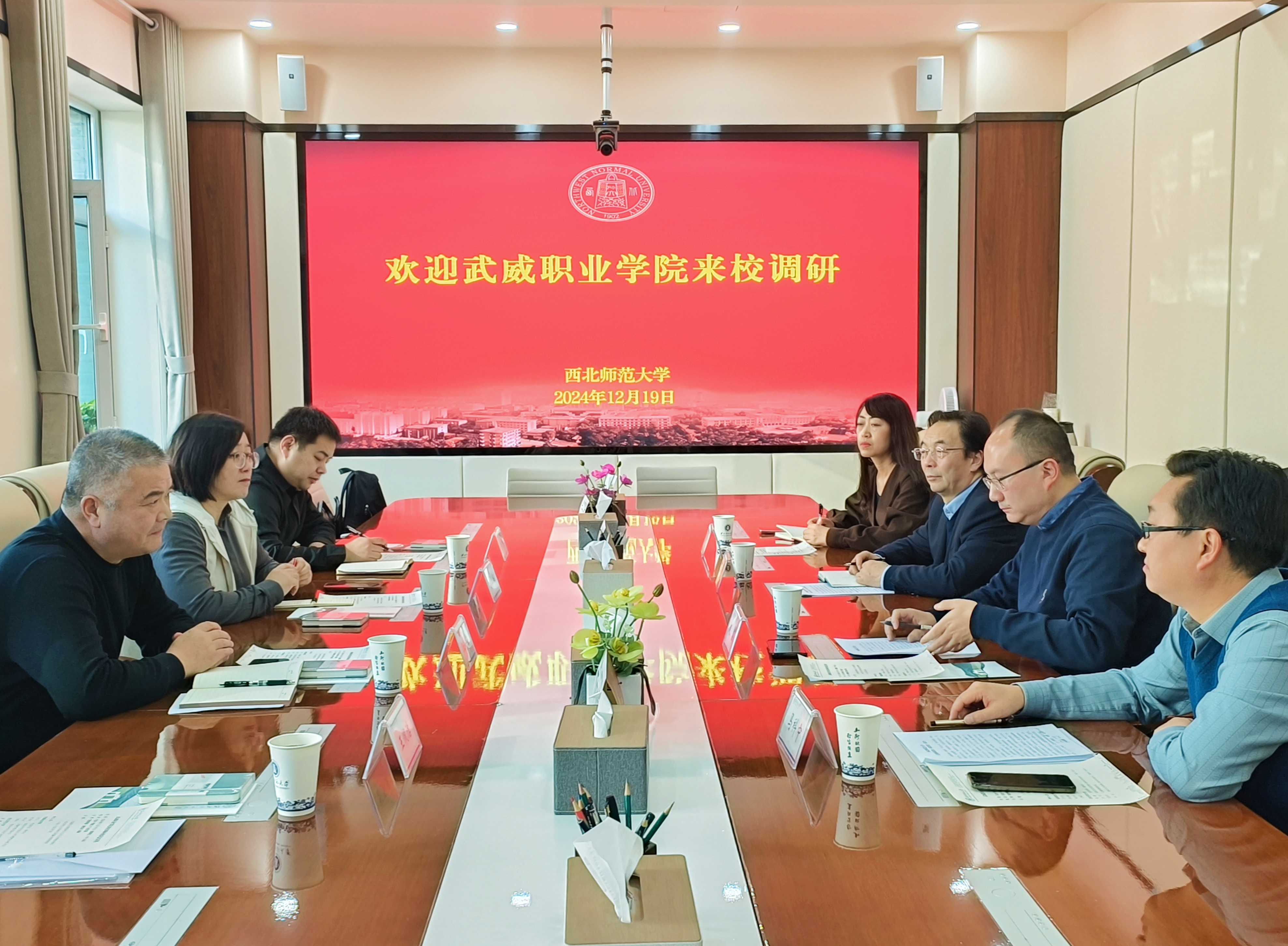 西北師范大學(xué)黨委常委、副校長(zhǎng)趙鑫表示要進(jìn)一步加強(qiáng)合作交流,充分發(fā)揮自身優(yōu)勢(shì),促進(jìn)雙方共享優(yōu)質(zhì)教學(xué)資源。與會(huì)老師就加強(qiáng)院校合作、教師繼續(xù)教育、留學(xué)生學(xué)生聯(lián)合培養(yǎng)、簽署戰(zhàn)略合作協(xié)議、后勤服務(wù)管理等內(nèi)容與國(guó)際文化交流學(xué)院、后勤保障部負(fù)責(zé)人展開(kāi)了深入交流。