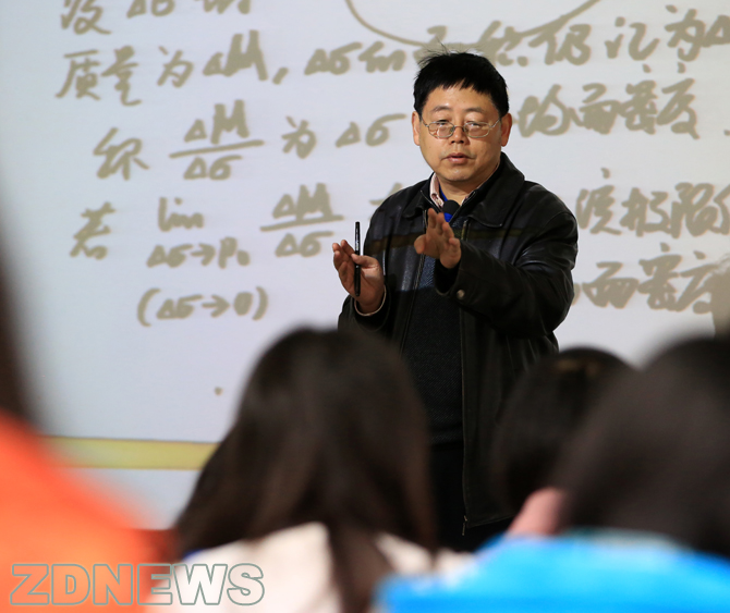 現(xiàn)在,蘇德礦上課用兩個(gè)話筒,一個(gè)掛在脖子上,一個(gè)放在講臺上,無論學(xué)生坐在哪個(gè)角落,都能聽得清楚。他還像一個(gè)“舞臺監(jiān)督”一樣嚴(yán)格布置環(huán)境:教室第一排的窗簾必須拉上,以免大屏幕反光;幻燈片的紙片要用油性筆書寫,這樣投影到屏幕上的效果最清晰。——這樣的布局,就是能為學(xué)生能穩(wěn)定他們的注意力設(shè)計(jì)的,特別是,當(dāng)他們感覺“犯難”時(shí),蘇德礦能適時(shí)拋上一個(gè)“段子”,把學(xué)生分散的注意力拉回來: “當(dāng)你喜歡一個(gè)人,他的一點(diǎn)變化你都看在眼里,別人都變成了常數(shù),TA才是唯一變量。” 這是在講解偏導(dǎo)函數(shù);他還用“存錢存銀行還是存余額寶”來解釋函數(shù)里的重要極限概念。在講一元復(fù)合函數(shù)求導(dǎo)的時(shí)候,他用來解釋的例子是:“就像最近來天氣突然熱起來,你要脫衣服。脫到怎樣合適呢?一件一件脫,到不熱了為止。復(fù)合函數(shù)也一樣,一層一層求導(dǎo),直到內(nèi)函數(shù)的導(dǎo)數(shù)有公式,就成了。”又比如,說“開車為什么會(huì)撞樹?因?yàn)槌髽涞姆较?,再一個(gè),就是車速太快。”蘇德礦先賣個(gè)了關(guān)子,接著把方向?qū)?shù)亮出來,“在P點(diǎn)沿L方向的函數(shù)值的變化率,跟撞樹一樣,一個(gè)是方向,一個(gè)是速度。”