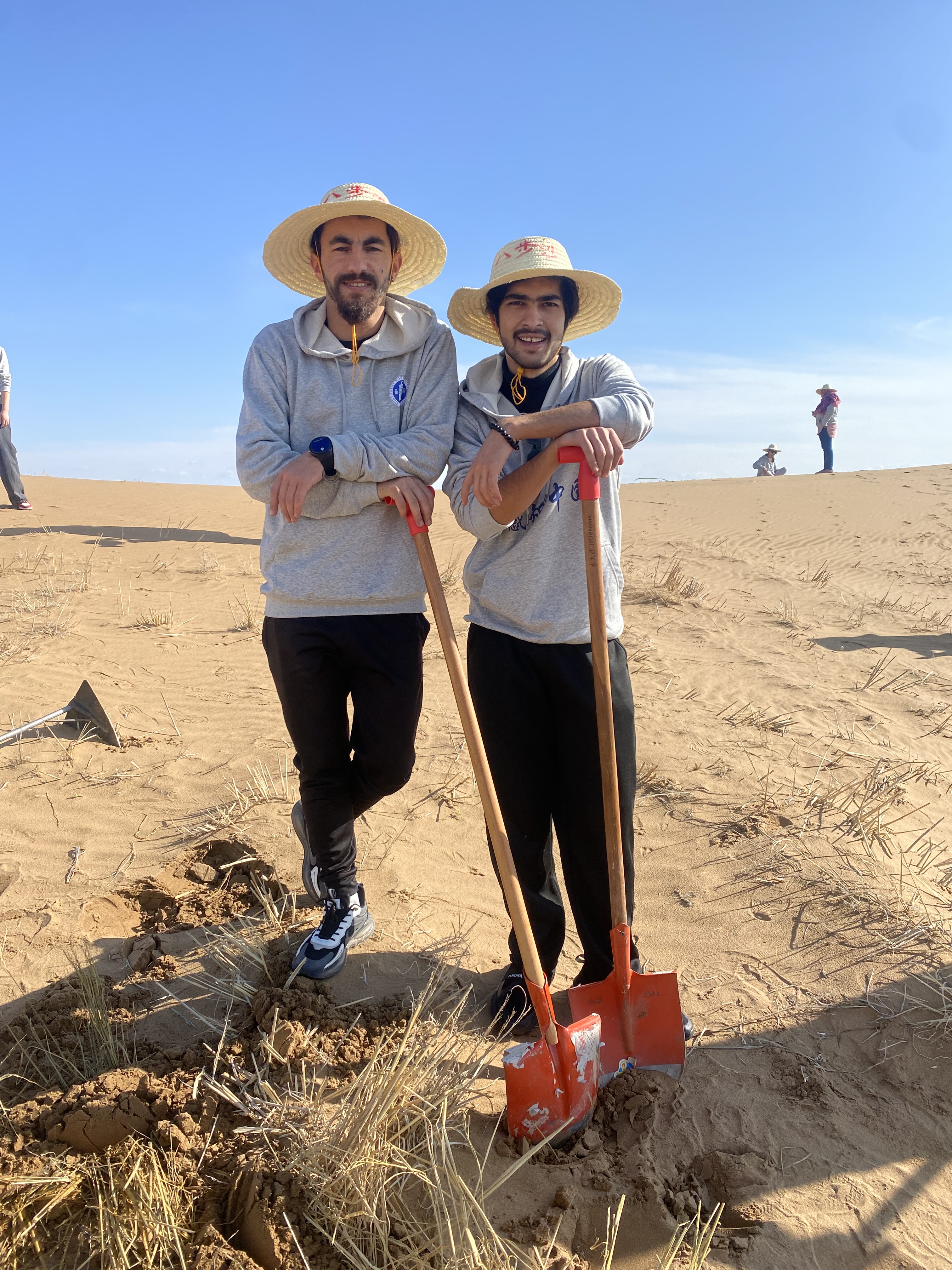 留學生在八步沙體驗壓沙