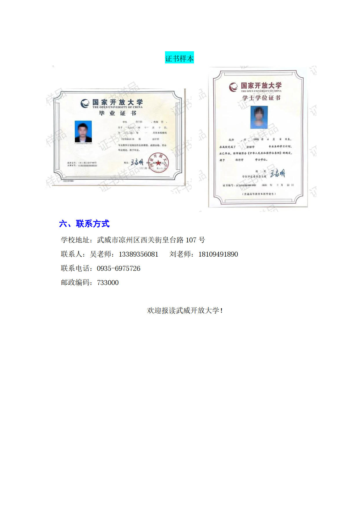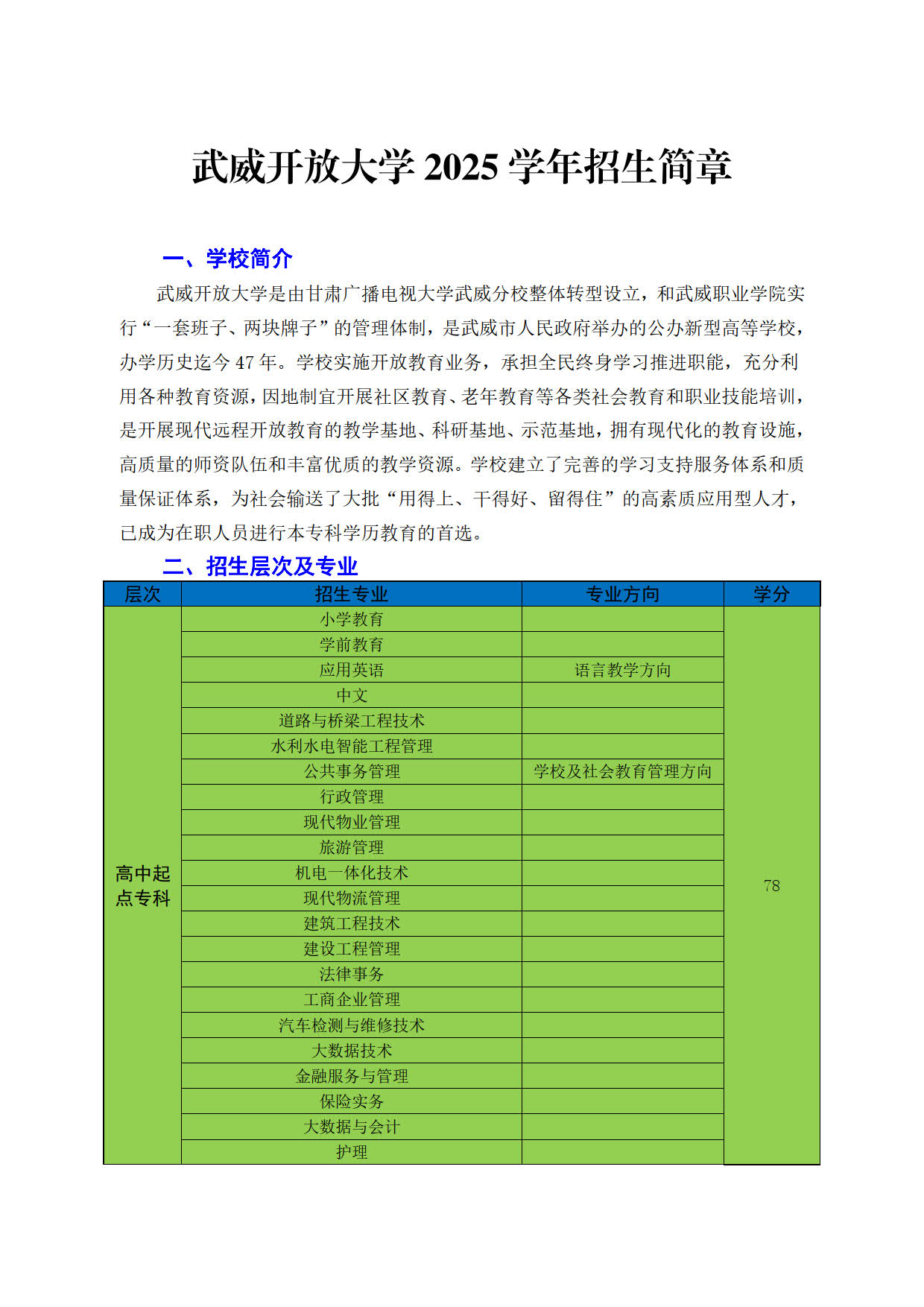武威開放大學2025年招生簡章