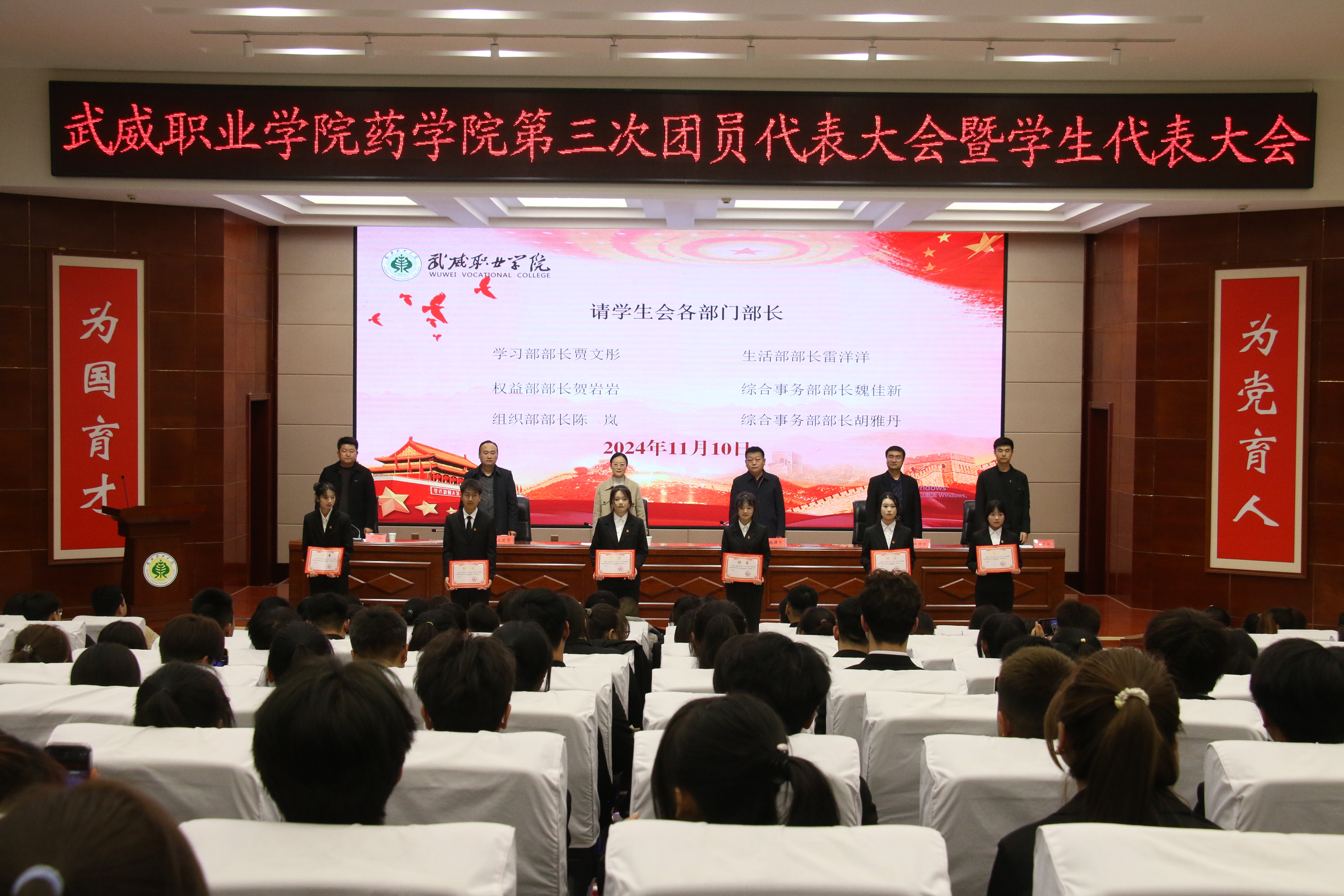 魏曙光宣讀了第三屆團委委員名單和學(xué)生會主席團成員名單。參會老師為新一屆團委委員和學(xué)生會主席團成員頒發(fā)了聘書。