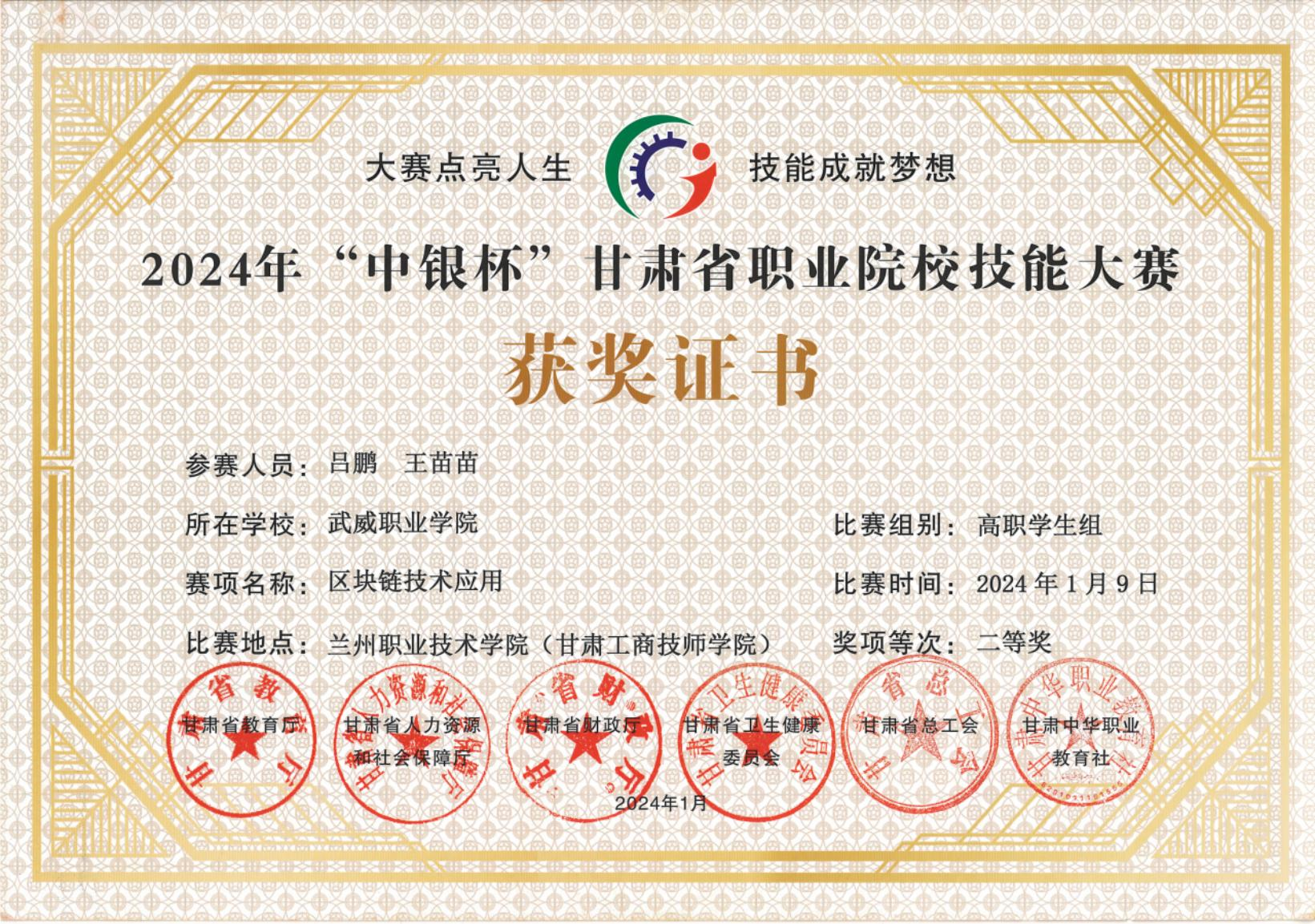 獲2024年“中銀杯”甘肅省職業(yè)院校技能大賽“二等獎(jiǎng)”