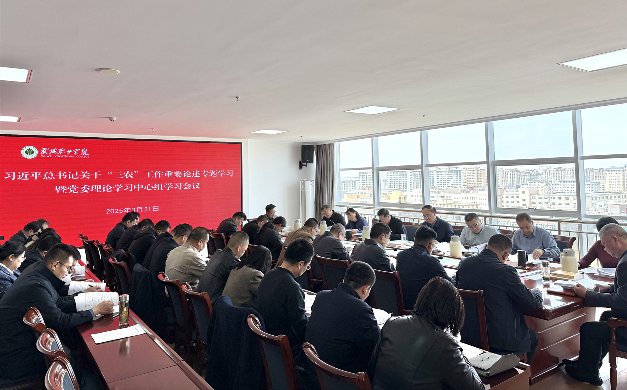 3月21日,學校召開黨委理論學習中心組學習會議,專題學習研討習近平總書記關(guān)于“三農(nóng)”工作重要論述。校黨委理論學習中心組成員參加,校長李海軍,各部門、二級學院主要負責人列席。黨委書記王宏主持會議并講話。