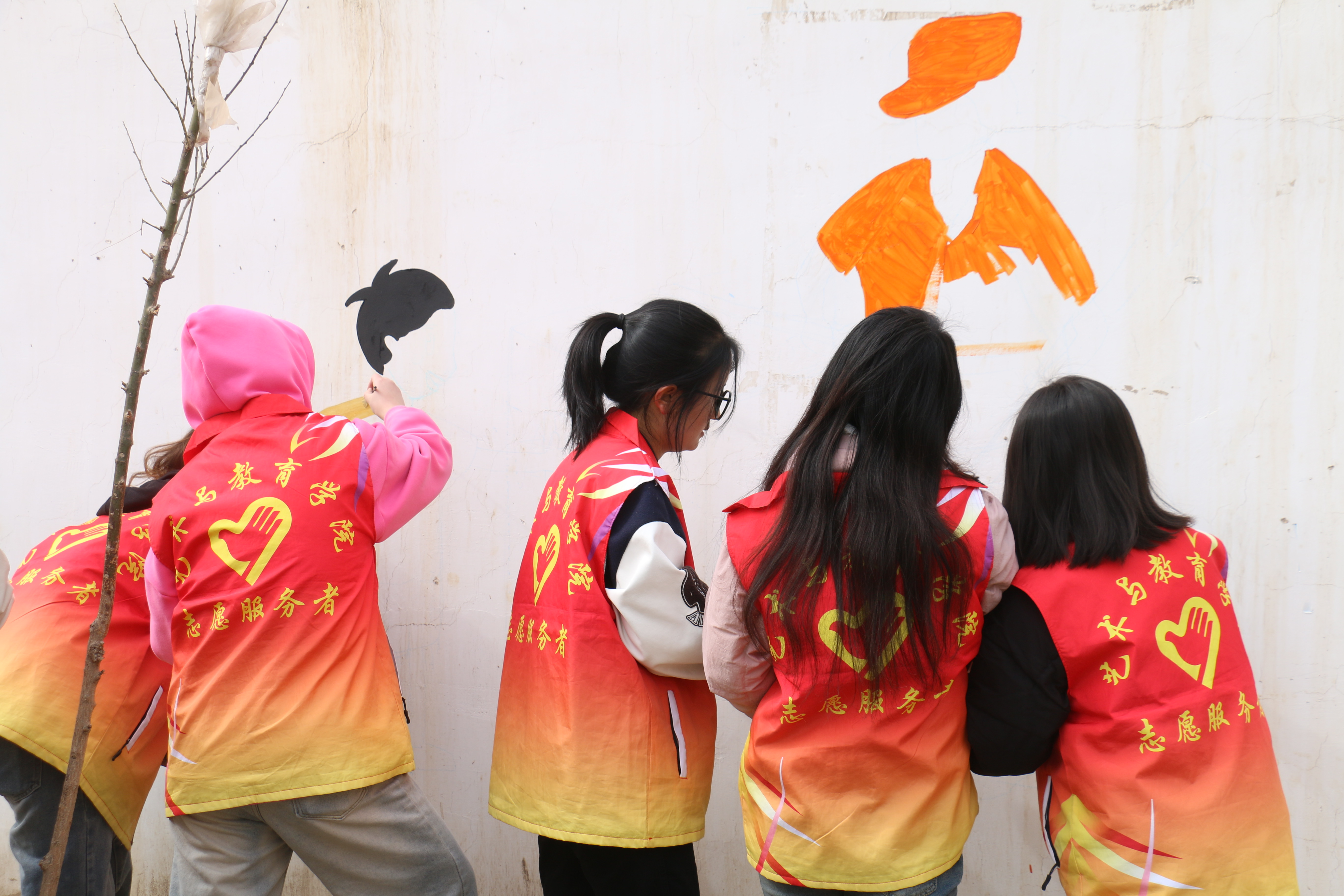 在涼州區(qū)富鑫源社區(qū),學(xué)前教育專業(yè)20余名學(xué)生化身“社區(qū)美育師”,與甘肅十二元素傳媒有限公司設(shè)計師共同完成了“鄰里和諧”主題墻繪。學(xué)生通過墻繪師的專業(yè)輔導(dǎo),結(jié)合幼兒教育知識設(shè)計卡通圖案,將廢棄墻面變?yōu)椤皶v故事”的文化長廊。23級數(shù)字媒體班王格爾桑表示:從主題設(shè)計到落地實踐,我感受到藝術(shù)教育需要溫度和共情。
