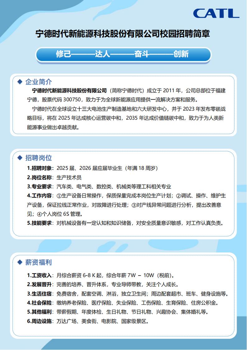寧德時(shí)代新能源科技股份有限公司校園招聘簡(jiǎn)章