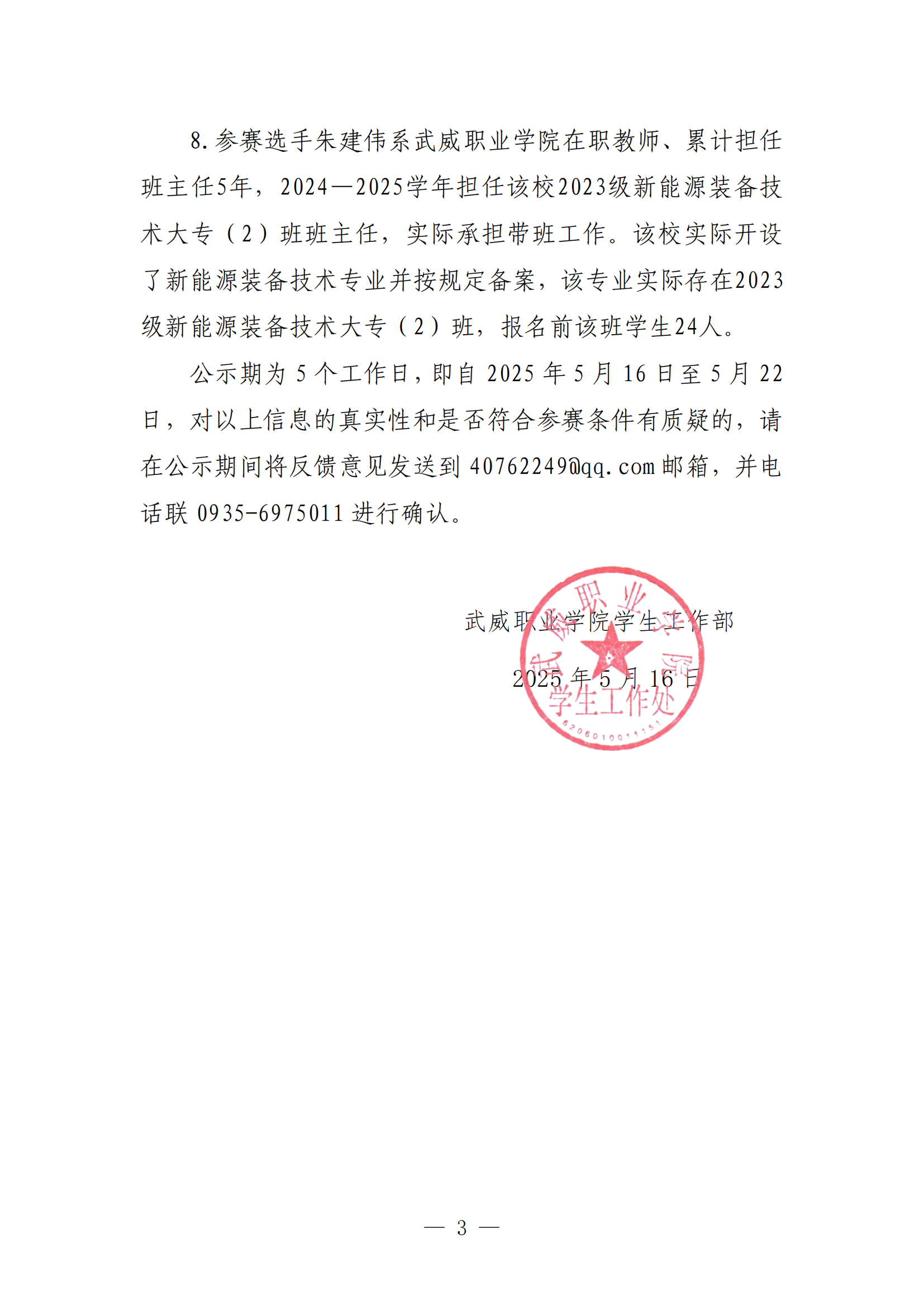 2025年全省職業(yè)院校技能大賽班主任能力比賽武威職業(yè)學(xué)院參賽選手信息公示