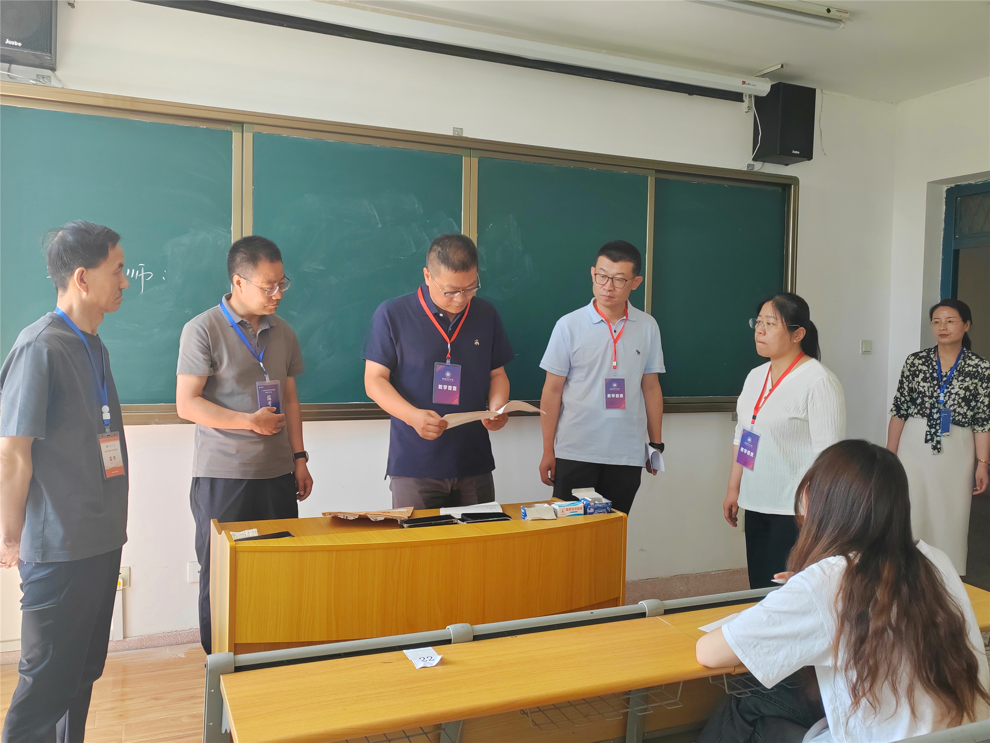 為強化期末考試組織管理,嚴肅考風考紀,確??荚嚬ぷ黜樌M行,7月1日—3日,校領(lǐng)導帶領(lǐng)教務(wù)處及各二級學院負責人,深入教學一線對期末考試組織開展情況進行了巡視檢查。