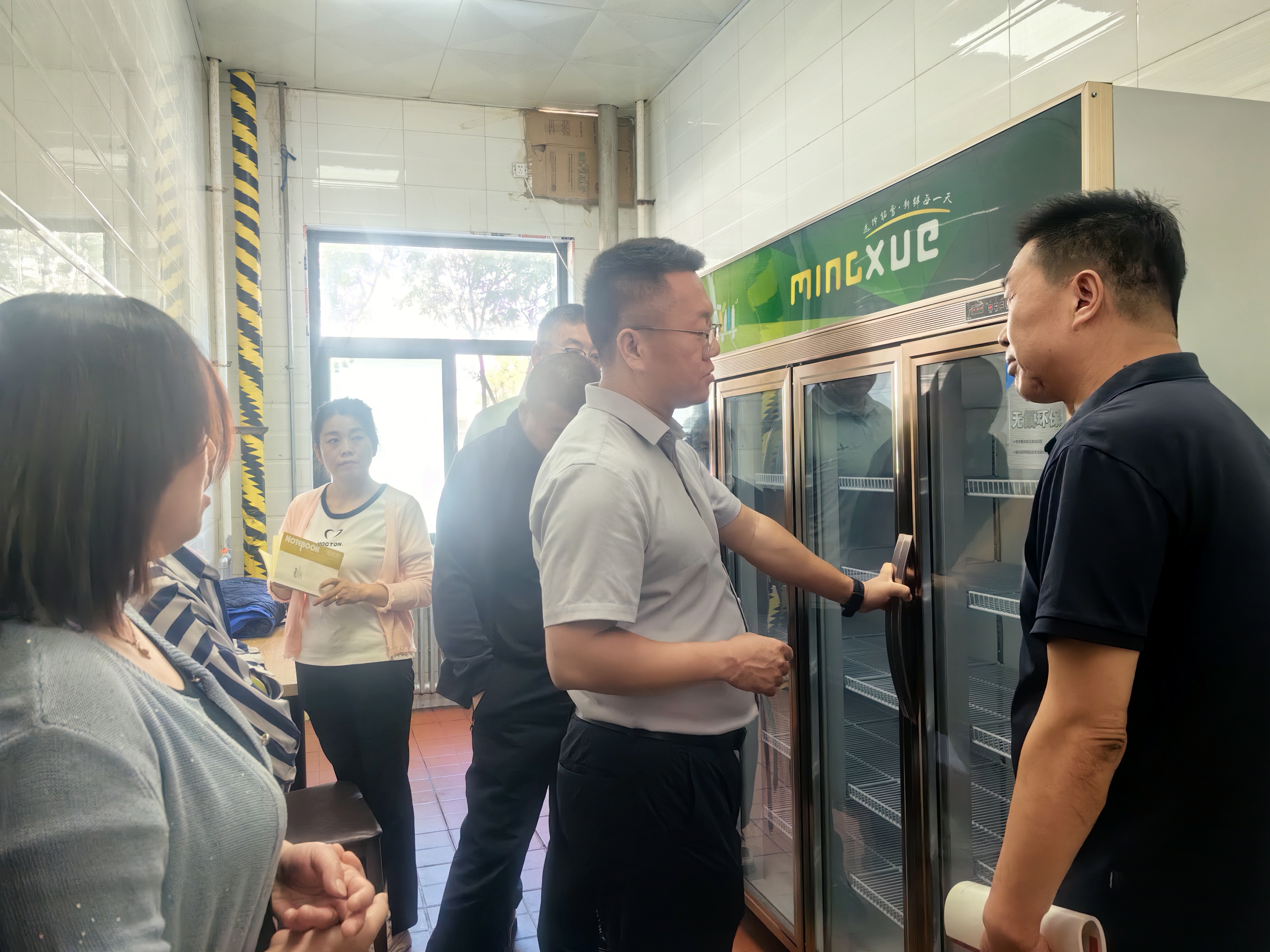 在食堂現(xiàn)場(chǎng)檢查指導(dǎo)中,劉楠對(duì)制度上墻、排氣扇紗網(wǎng)孔洞大小、留樣操作、紫外線消毒設(shè)備、天花板地溝縫隙等方面進(jìn)行細(xì)心指導(dǎo),管理人員跟隨做了詳細(xì)記錄,為今后食堂日常監(jiān)管提供了很好的參考。