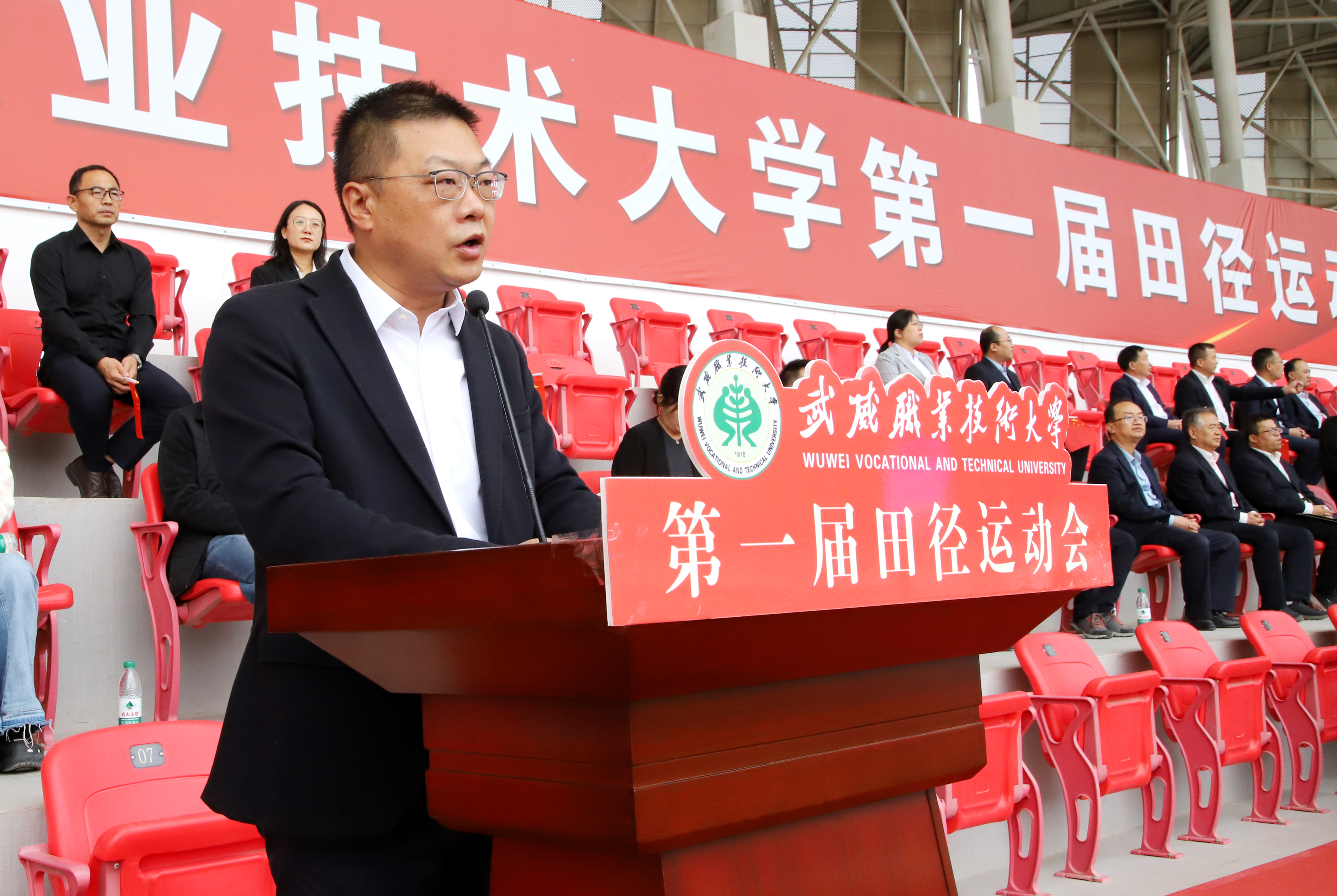 王宏宣布武威職業(yè)技術(shù)大學(xué)第一屆田徑運(yùn)動(dòng)會(huì)開幕。