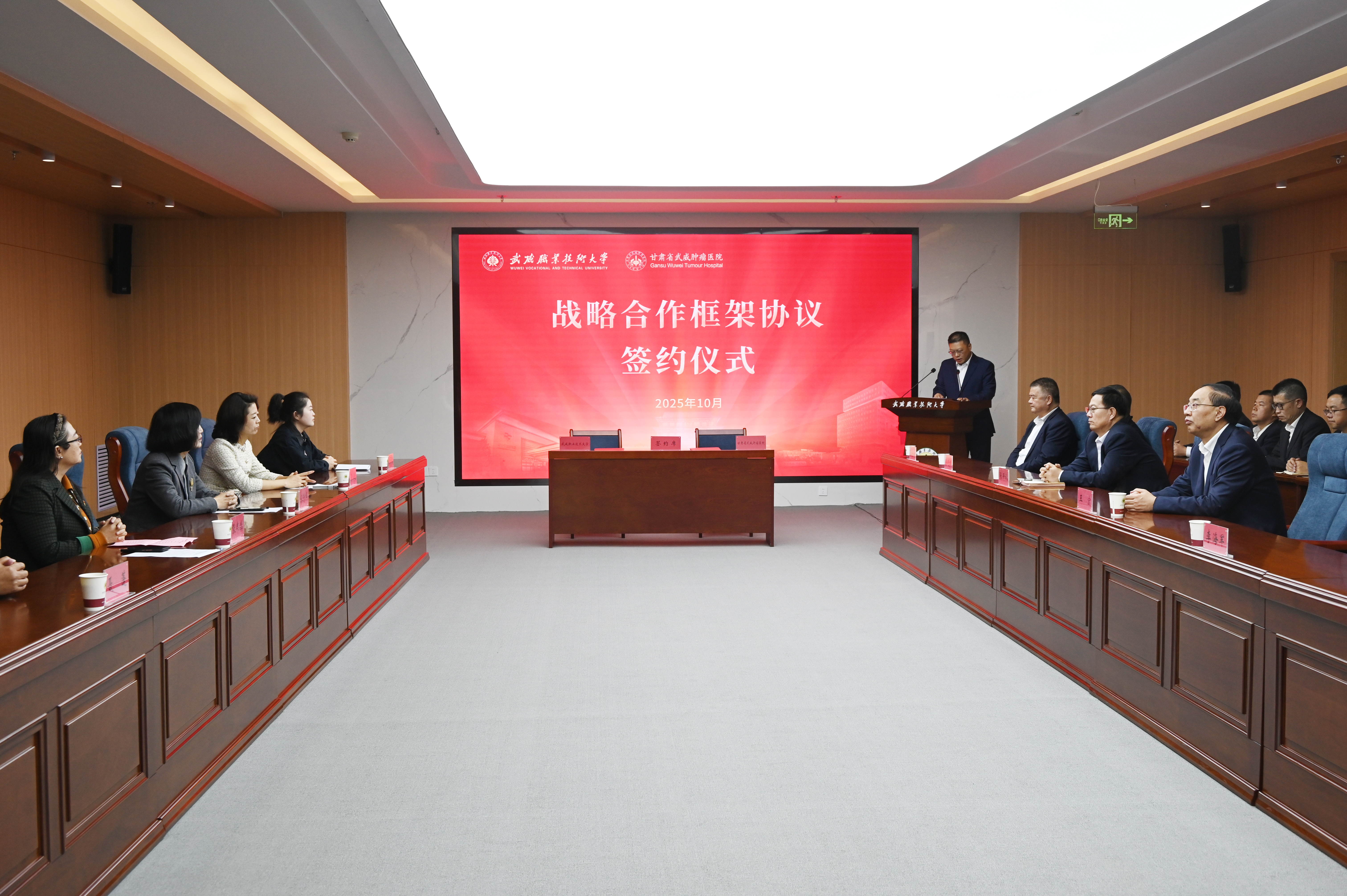 10月12日下午,武威職業(yè)技術(shù)大學(xué)與甘肅省武威腫瘤醫(yī)院舉行戰(zhàn)略合作框架協(xié)議簽約儀式,標(biāo)志著雙方合作進(jìn)入新階段。這是落實(shí)“健康中國”戰(zhàn)略、推動(dòng)醫(yī)療與教育深度融合的重要舉措,將助力“健康甘肅”建設(shè)和武威市“兩擎牽引、五極迸發(fā)”發(fā)展格局。