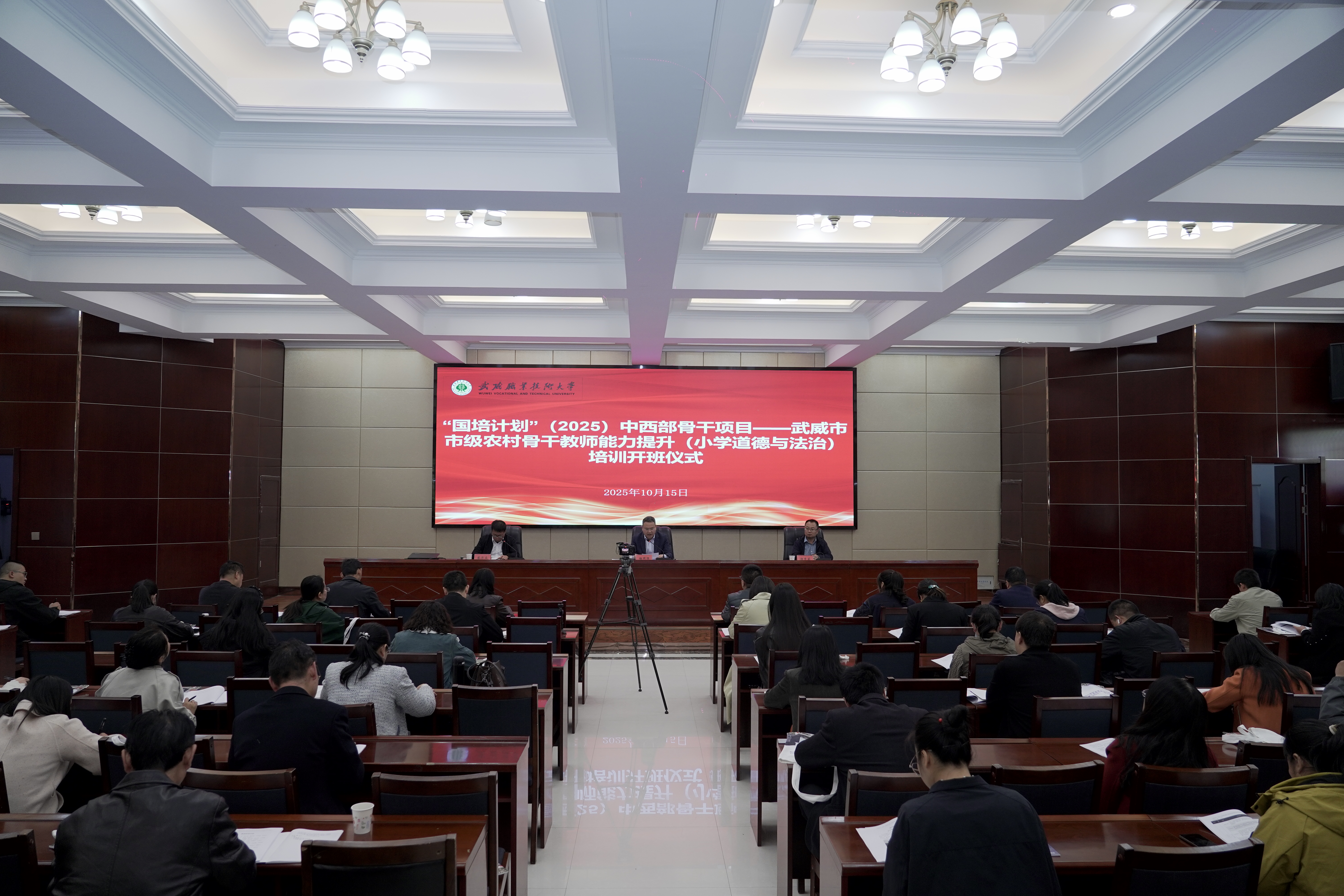 10月15日,由武威市教育局主辦、武威職業(yè)技術(shù)大學(xué)承辦的“國(guó)培計(jì)劃”(2025)中西部骨干項(xiàng)目——武威市市級(jí)農(nóng)村骨干教師能力提升(小學(xué)道德與法治)培訓(xùn)班在學(xué)校行樹樓北側(cè)報(bào)告廳正式開班。學(xué)校黨委委員、副校長(zhǎng)伍國(guó)強(qiáng)出席開班儀式。培訓(xùn)組織管理工作人員及60名參訓(xùn)骨干教師共同參加。開班儀式由學(xué)校國(guó)際合作交流處副處長(zhǎng)蔡濟(jì)眾主持。