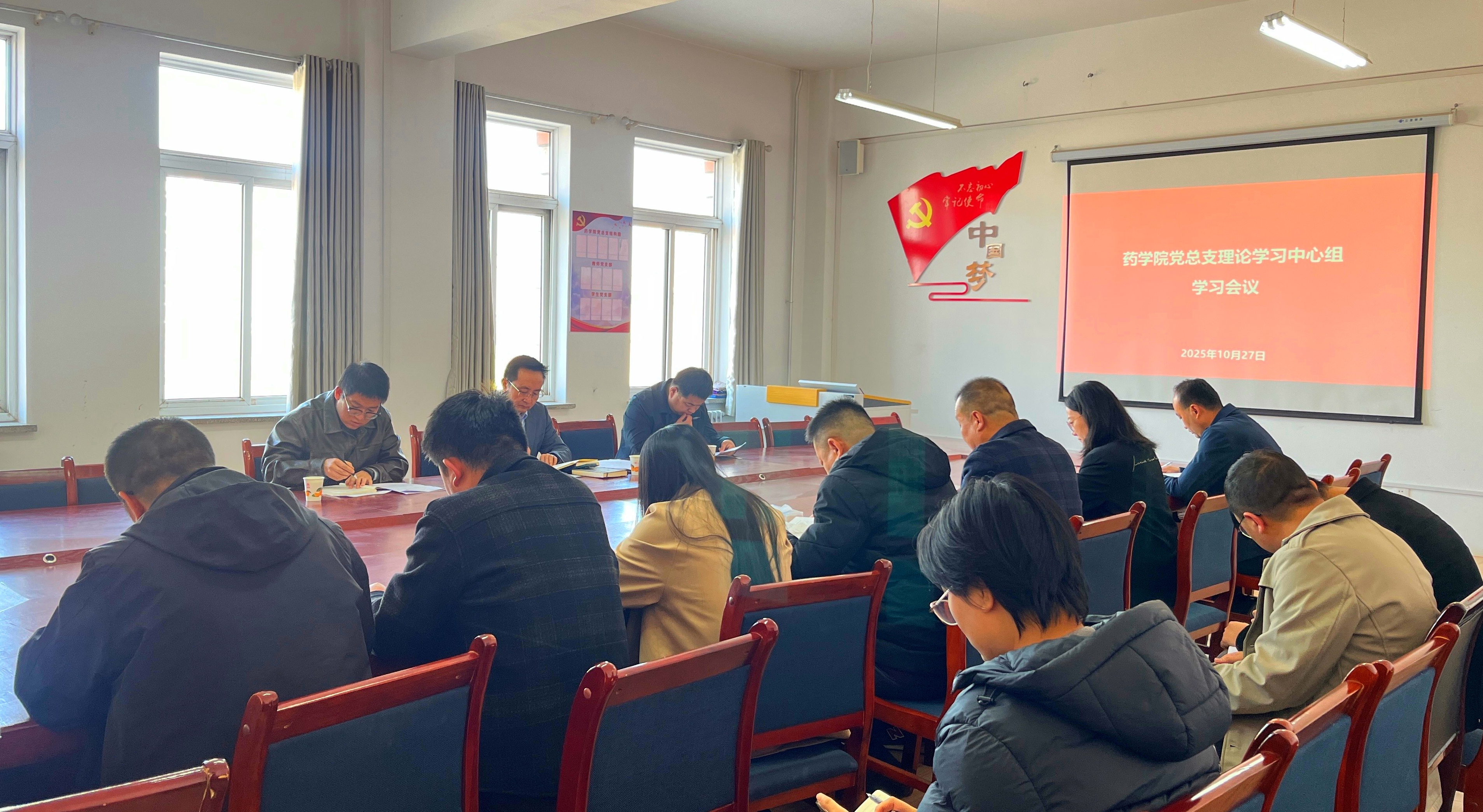 學(xué)校黨委委員、組織部部長(zhǎng)任陶列席旁聽(tīng)藥學(xué)院黨總支理論學(xué)習(xí)中心組學(xué)習(xí)會(huì)議