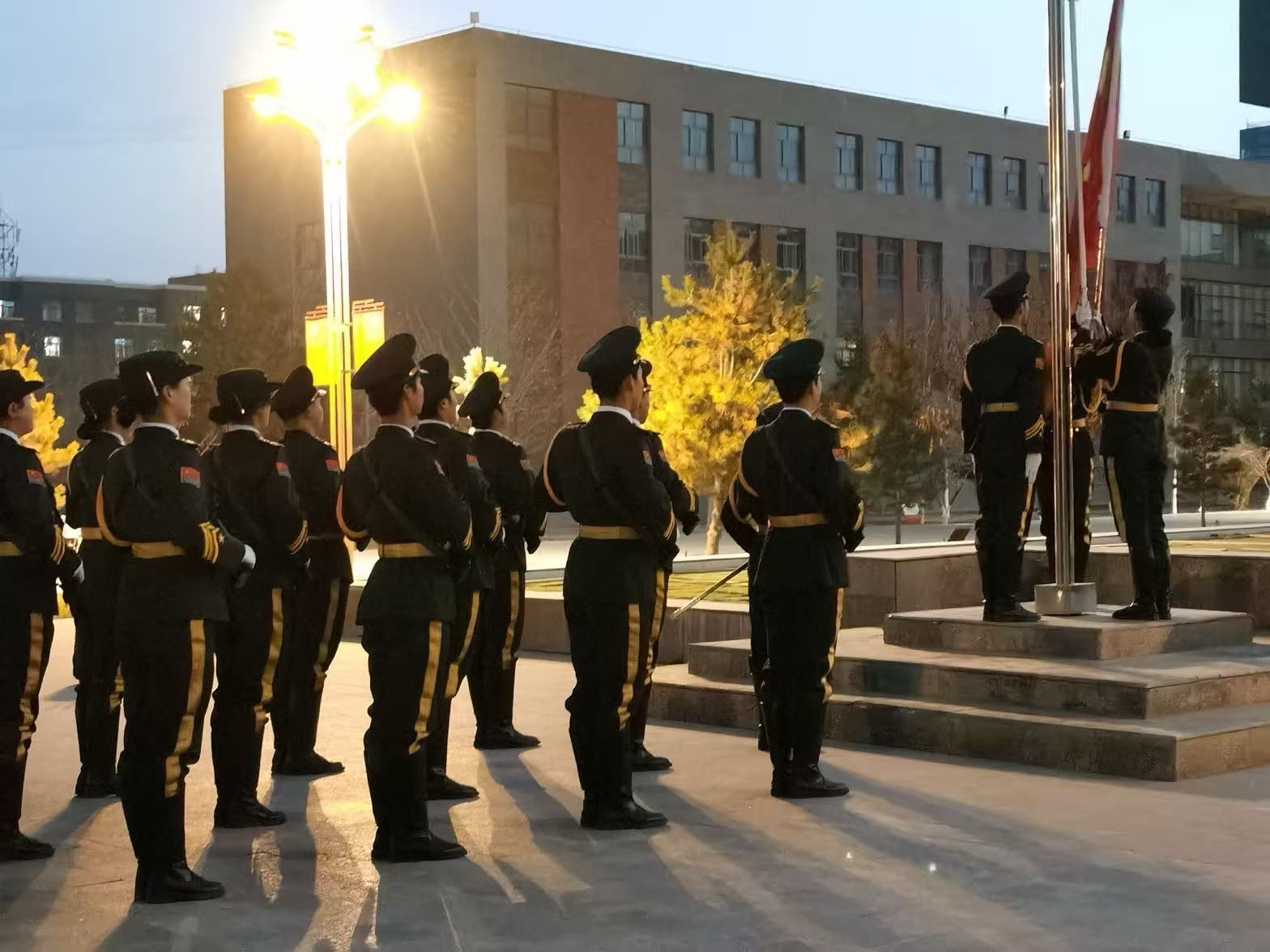 全體學(xué)生整齊列隊,伴隨著莊嚴的國歌,注視著國旗護衛(wèi)隊護送五星紅旗冉冉升起,展現(xiàn)了學(xué)院學(xué)子昂揚向上的精神風貌。