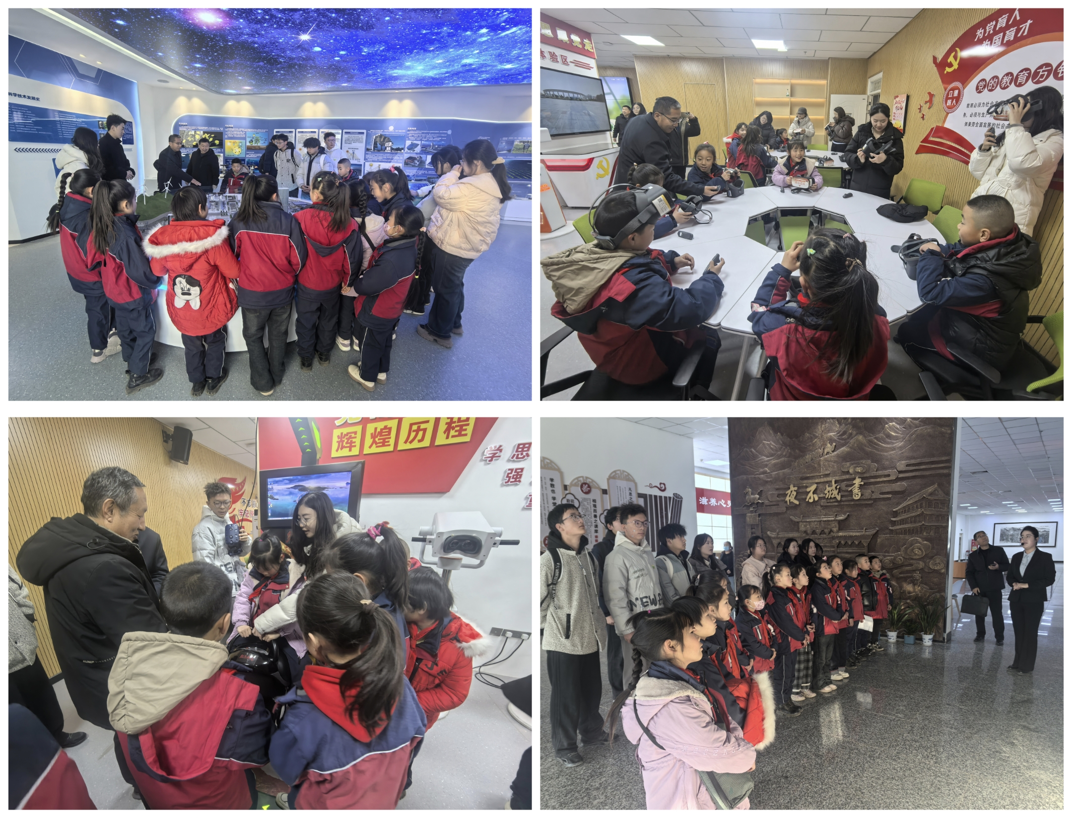 共建簽約儀式后,學(xué)生們參觀了學(xué)校圖書館、新能源科技館、課程思政教學(xué)研究示范中心等場(chǎng)館。孩子們穿梭于書香四溢的閱覽區(qū),駐足于各種先進(jìn)的模型與互動(dòng)裝置前,直觀感受VR技術(shù)賦能思政課堂的創(chuàng)新魅力,眼神中充滿了對(duì)知識(shí)的渴望與探索,這次參觀不僅是一次校園環(huán)境體驗(yàn),更是一次深刻的“潤物細(xì)無聲”思政教育,在孩子們心中播下了求知與創(chuàng)新的種子。