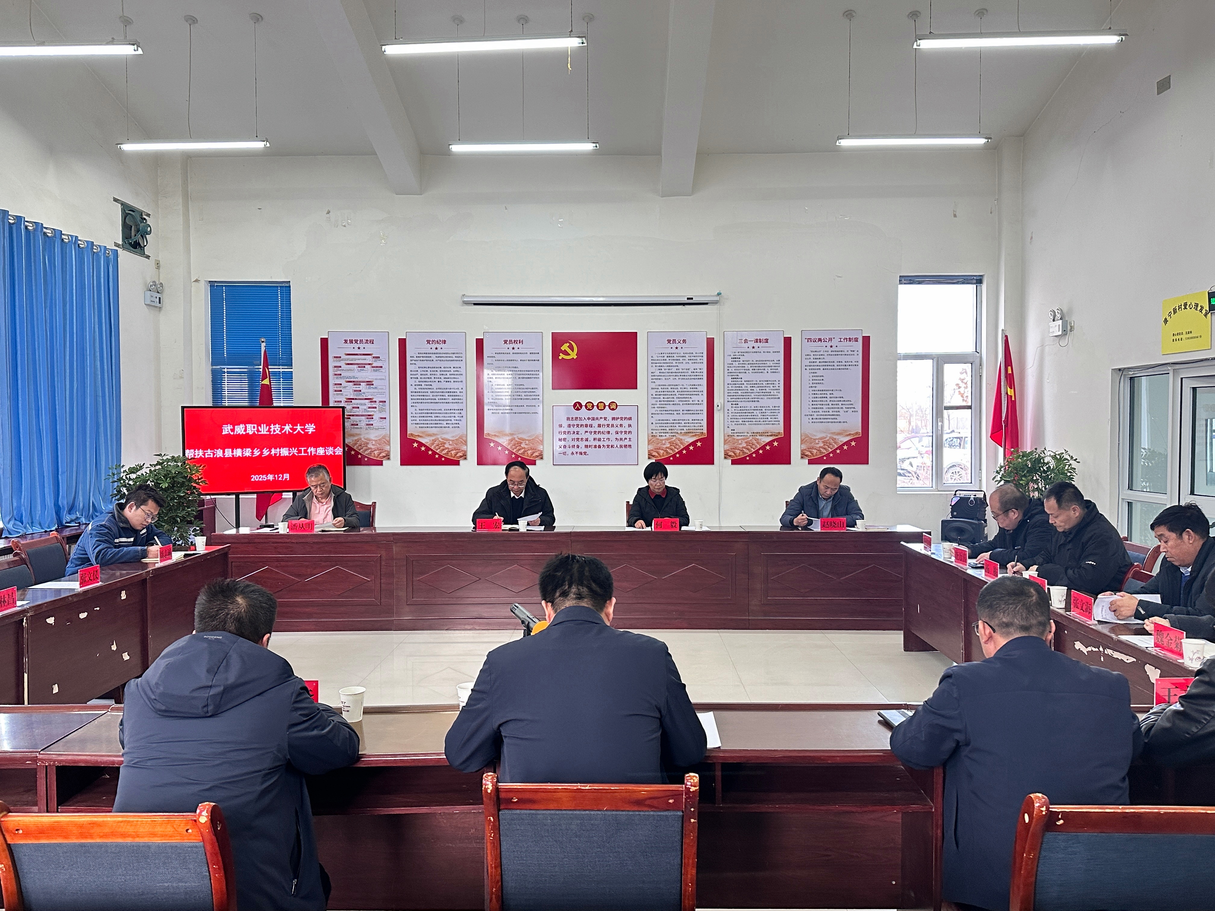 12月9日,黨委書記王宏帶隊(duì)到古浪縣橫梁鄉(xiāng)幸福新村、康寧新村,實(shí)地調(diào)研鄉(xiāng)村振興幫扶項(xiàng)目進(jìn)展,并召開(kāi)校地幫扶工作座談會(huì)。黨委委員、副校長(zhǎng)何毅,以及校工會(huì)、校辦企業(yè)泰豐新能源有限責(zé)任公司相關(guān)負(fù)責(zé)人參加座談會(huì)。