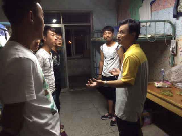 9月6日晚,汽車工程系黨總支負責人許成林老師和新生班主任到汽車系新生所在的二號樓和八號樓宿舍看望問候2015級新生。