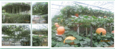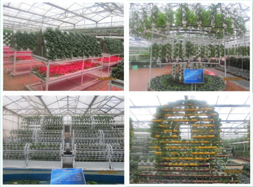 蔬菜高科技無土栽培模式展廳展示了各種無土栽培模式,主要有水培、霧培、基質培、管道培、立柱培、吊管培、螺旋式立體栽培等。管道設施密密匝匝、高低參差、錯落有致,葉綠、花紅、果黃,使展廳成為集各種工藝造型展示和高科技管道栽培模式于一體的薈萃園。