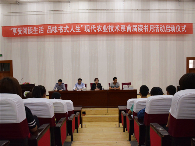 為營(yíng)造“書香系部”,現(xiàn)代農(nóng)業(yè)技術(shù)系舉辦首屆讀書月活動(dòng),并于5月19日在尚德樓正徳廳舉行了“享受閱讀生活,品味書式人生”讀書月活動(dòng)啟動(dòng)儀式。我系全體專兼職教師,設(shè)施農(nóng)業(yè)技術(shù)、綠色食品生產(chǎn)與檢測(cè)、種子生產(chǎn)與經(jīng)營(yíng)3個(gè)專業(yè)近300名學(xué)生參加了本次活動(dòng)。
