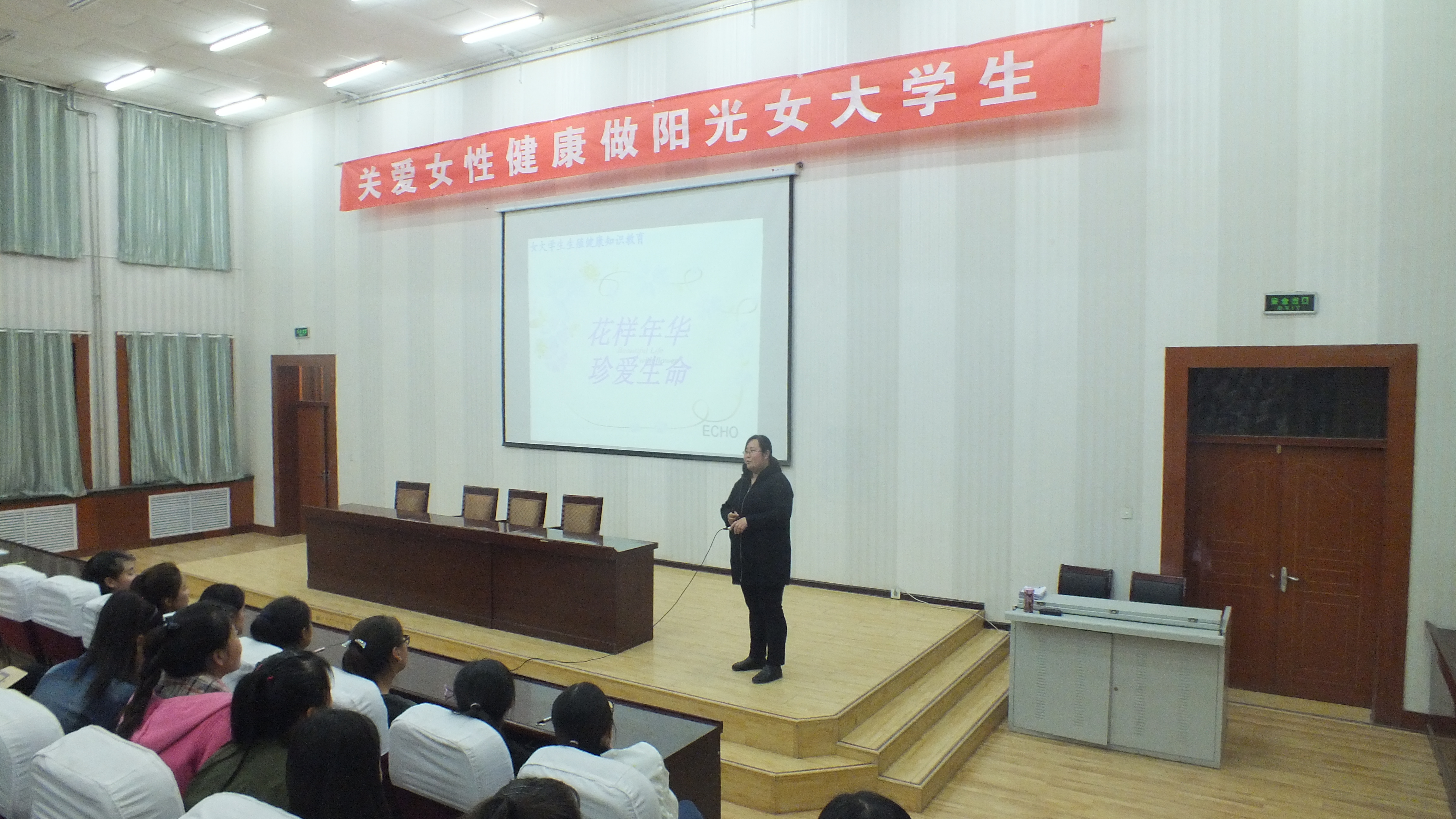 2017年3月20日起,由課題組負(fù)責(zé)人孔慶亮、寇新華、梁育霞、張兆玉等四名教師,為護(hù)理系1260名學(xué)生繼續(xù)開展《花樣年華、珍愛生命》主題講座,通過有效的生殖健康知識教育,針對痛經(jīng)、月經(jīng)失調(diào)等常見問題開展健康知識教育,提高女大學(xué)生生殖健康知識的知曉率,使她們重視生殖健康,避免出現(xiàn)意外妊娠、妊娠并發(fā)癥、婦科炎癥等問題;針對我院女生心理特點(diǎn),引導(dǎo)她們?nèi)绾握_與異性相處,理性對待大學(xué)生戀愛問題,樹立自尊、自愛、自強(qiáng)的意識,提高自我保護(hù)能力,從最大程度上避免身體和心靈受到傷害,做陽光女大學(xué)生。