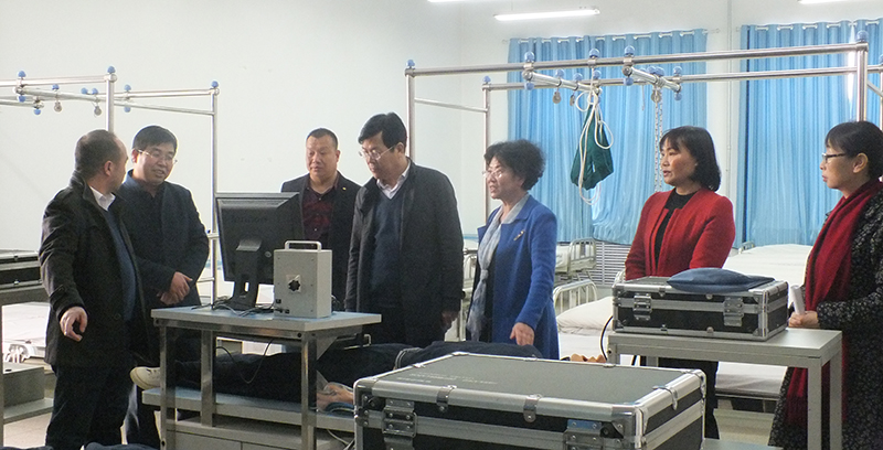 毛校長一行參觀了護理系的生命科技館、機能實訓(xùn)室、基護實訓(xùn)室、內(nèi)外科實訓(xùn)室等醫(yī)學(xué)類實訓(xùn)室,詳細(xì)了解了實驗設(shè)備的運行情況和實驗實訓(xùn)課程的教學(xué)管理模式。潘玉華向來賓們介紹了學(xué)院申辦臨床醫(yī)學(xué)專業(yè)的進展,以及我院實訓(xùn)課程建設(shè)和籌建實驗實訓(xùn)室取得的成果。