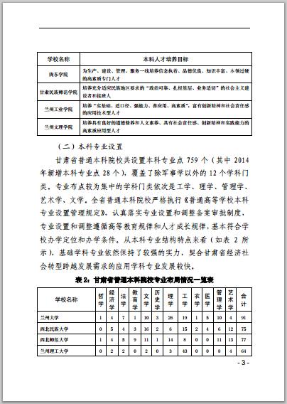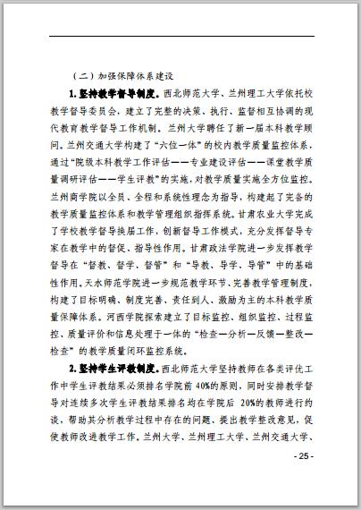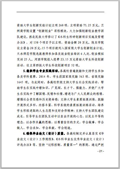 甘肅省普通高等學校2014年本科教學質(zhì)量報告