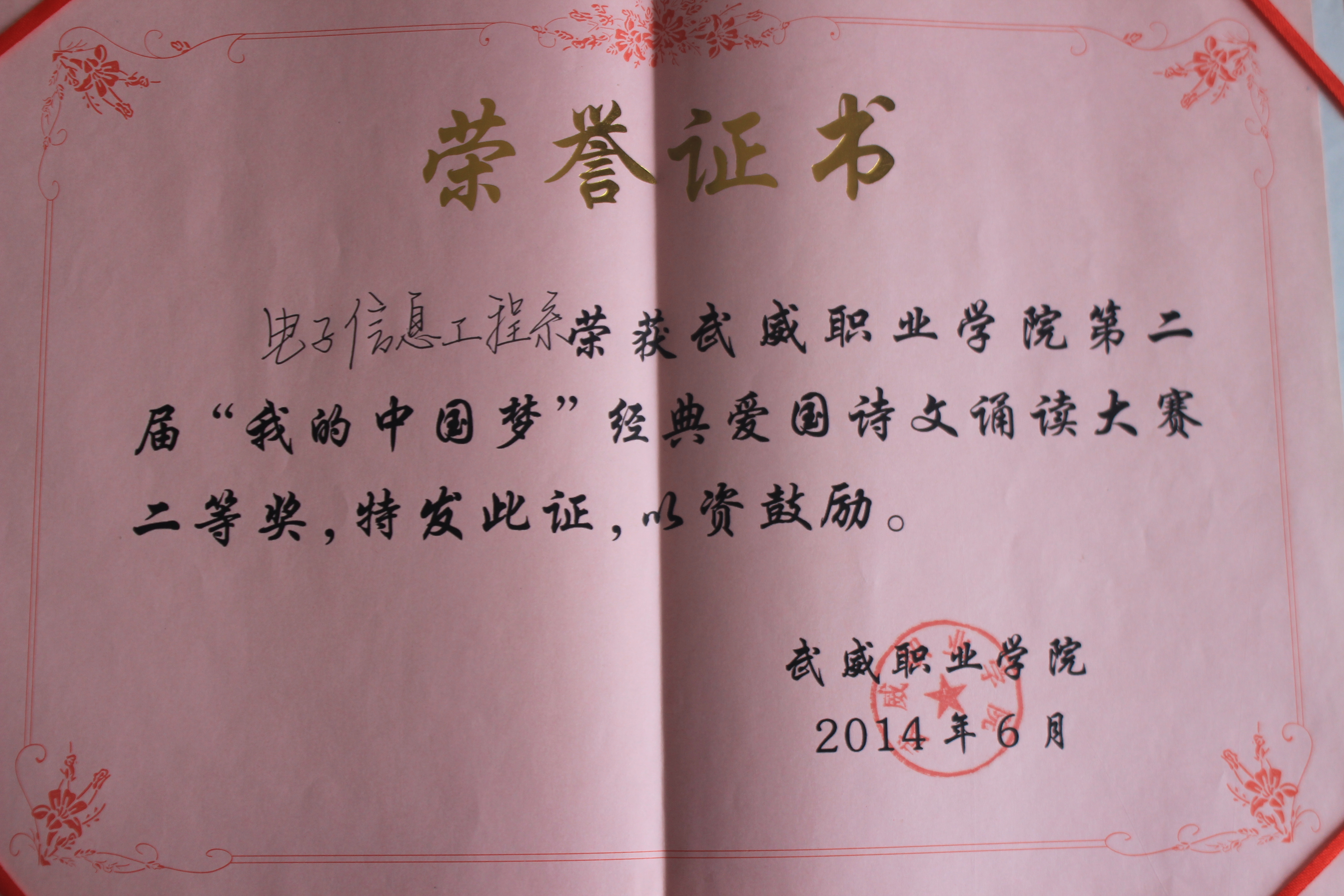 第二屆“我的中國夢”經典愛國詩文誦讀大賽-二等獎