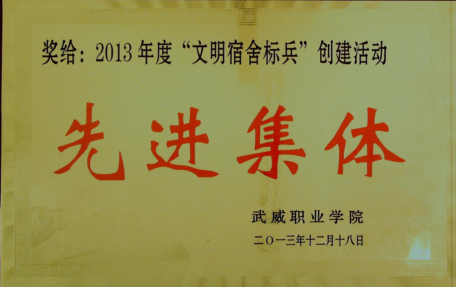 2013年“文明宿舍標兵”創(chuàng)建活動先進集體獎