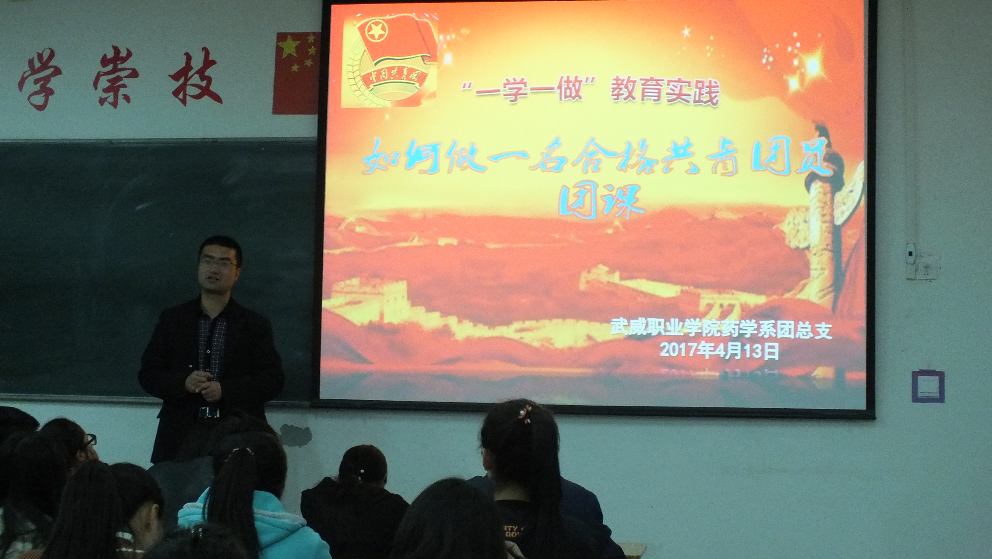為進(jìn)一步加強(qiáng)“學(xué)習(xí)總書(shū)記講話,做合格共青團(tuán)員”實(shí)踐學(xué)習(xí)教育效果,藥學(xué)系團(tuán)總支在系黨總支的領(lǐng)導(dǎo)下,按照學(xué)院團(tuán)委“一學(xué)一做”教育實(shí)踐安排,于4月13日晚在明遠(yuǎn)樓501教室組織開(kāi)展了“如何做一名合格共青團(tuán)員”主題團(tuán)課,系團(tuán)總支書(shū)記陳輝生組織全系團(tuán)干部和團(tuán)員代表參加了此次主題團(tuán)課。