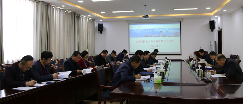學(xué)院召開(kāi)匯報(bào)會(huì),李引珍就本次核查的具體要求作了說(shuō)明。院長(zhǎng)、黨委副書(shū)記宗瑞謙圍繞學(xué)院師生比、研究生學(xué)位專任教師比例、生均教學(xué)行政用房、生均圖書(shū)、生均教學(xué)儀器設(shè)備值、生均占地面積、生均宿舍面積7項(xiàng)基本辦學(xué)指標(biāo)和我院2016年招生計(jì)劃執(zhí)行情況、專業(yè)設(shè)置、畢業(yè)生就業(yè)情況3項(xiàng)重點(diǎn)內(nèi)容作了匯報(bào)。