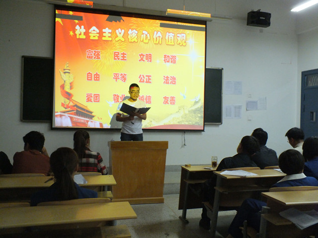 為深入學(xué)習(xí)貫徹黨的十八大精神和習(xí)近平總書記系列講話中關(guān)于大力推進(jìn)社會主義核心價值體系建設(shè)的要求,積極響應(yīng)院團委的號召,我系于4月14日組織師生在4號教學(xué)樓313教室開展了“社會主義核心價值觀引領(lǐng)我成長”主題演講比賽。