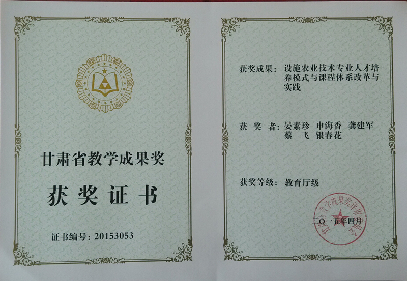 2015年甘肅省教學(xué)成果獎(jiǎng):設(shè)施農(nóng)業(yè)技術(shù)專(zhuān)業(yè)人才培養(yǎng)模式與課程體系改革與實(shí)踐